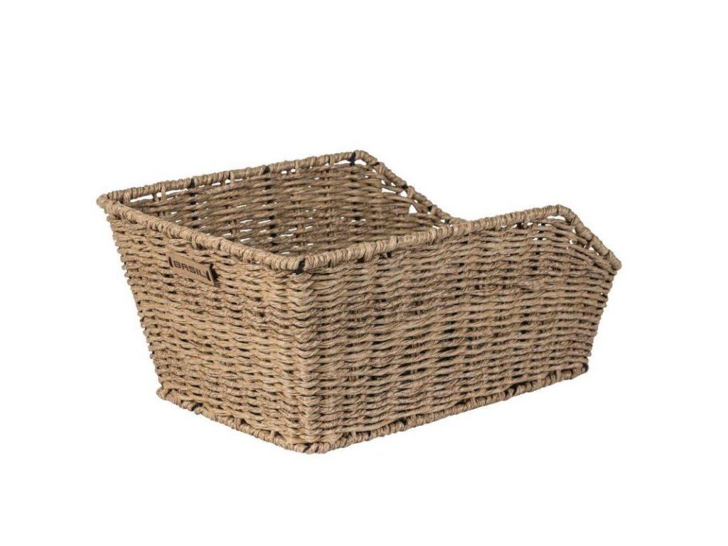 Fahrradkorb aus Kunststoff (synthetischem Rattan). Geeignet zur festen Montage am Gepäckträger. Einfache Montage. Wasserfestes und strapazierfähiges Material. Maximale Traglast: 5 kg. Maße: 47 cm x 47 cm x 22 cm (Außenmaße). Gewicht: 1,92 kg.