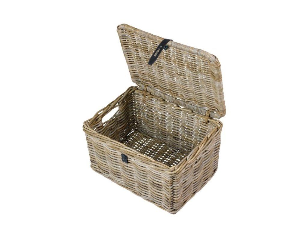 Der Basil Dax L ist ein wunderschöner, geräumiger Fahrradkorb aus Rattan, der durch seine elegante Form und die graue Farbe besticht. Ob für Ausflüge, den Schulweg oder gelegentliche Radtouren – dieser Korb ist ideal für den Transport Ihrer Sachen. Der praktische Deckel mit Lederriemenverschluss sorgt für die sichere Aufbewahrung Ihrer Gegenstände.