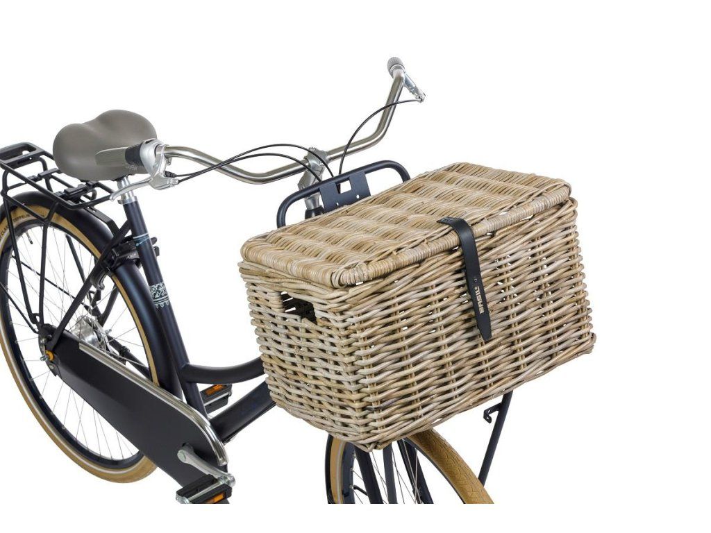 Stilvoller Rattankorb mit Deckel für den vorderen Fahrradgepäckträger