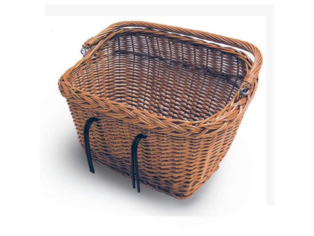 Der Basil Dublin Korb ist mit Doppelhaken zur einfachen Befestigung am Lenker oder Gepäckträger ausgestattet. Er verfügt über einen Tragegriff und lässt sich leicht abnehmen, sodass Sie ihn überallhin mitnehmen können. Dank der lackierten Oberfläche wirkt der Korb natürlich und ist vielseitig einsetzbar. Material: Weide. Maße: 48 cm x 33 cm x 31 cm (Außenmaße). Tragkraft: max. 5 kg.