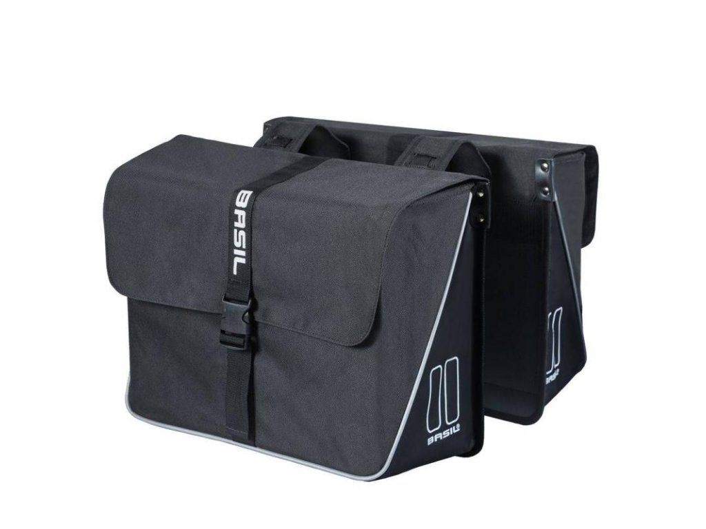 Die BASIL FORTE Doppeltasche mit 35 Litern Volumen ist eine speziell für den Gepäckträger entwickelte Doppeltasche aus extrem robustem und wasserabweisendem Material. Verstärkte Konstruktion, Verschluss mit verstellbaren Gurten. Einfache Befestigung am Gepäckträger dank Universal Bridge System (Klemmgurte). Kompatibel mit MIK-Systemen (70170) (dieses Klemmsystem ist separat erhältlich). Maximale Traglast: 10 kg.