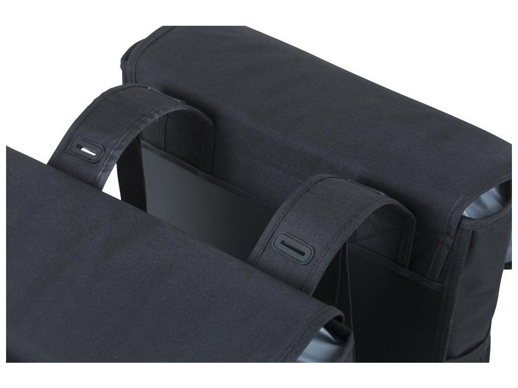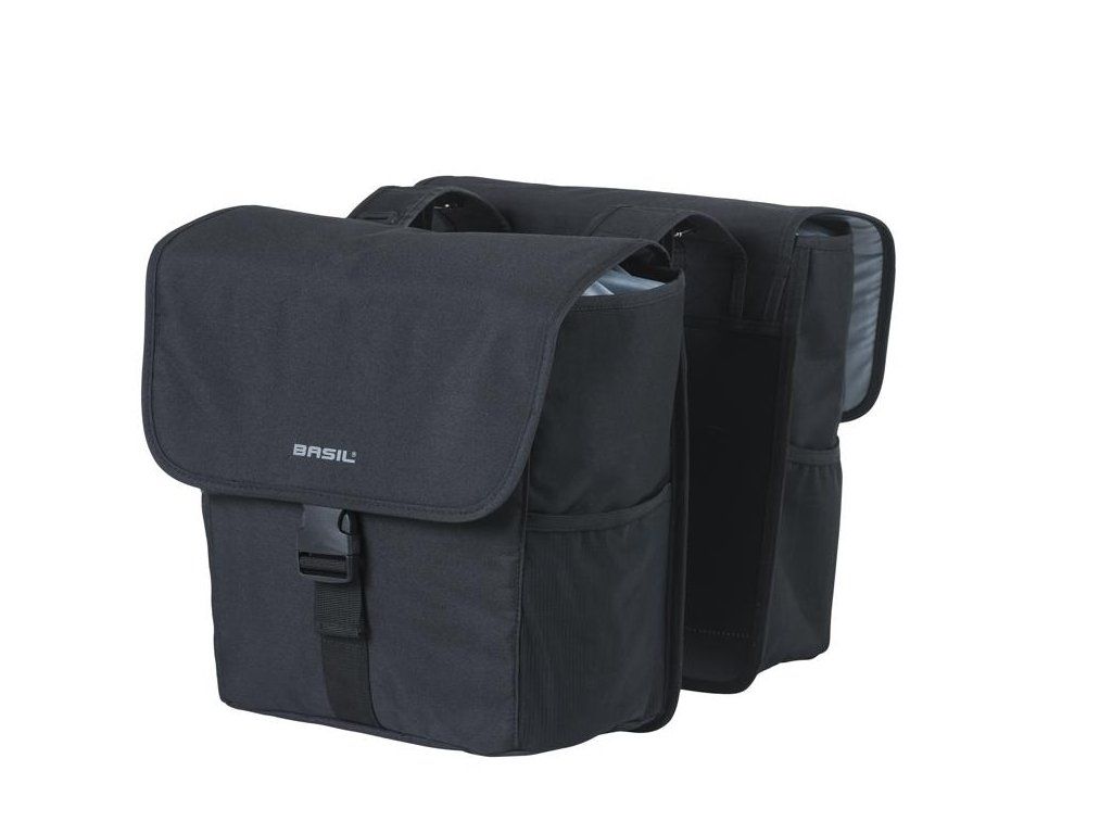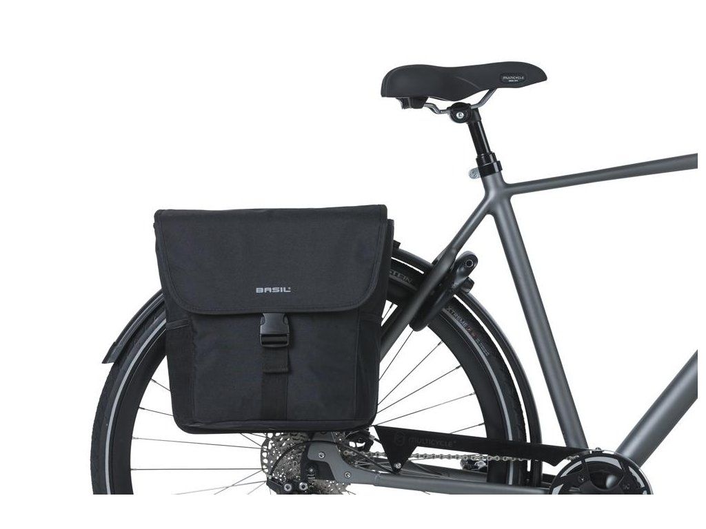 Die Basil GO Doppeltasche in klassischem Schwarz ist das ideale Einsteigermodell für Radfahrer, die unterwegs viel Stauraum benötigen. Ob Radtour mit Freunden oder Einkauf im Supermarkt – hier finden alle wichtigen Dinge Platz. Die Tasche ist abschließbar, sodass Ihr Inhalt während der Fahrt optimal geschützt ist. Verbindungsgurte halten beide Taschen zusammen. Dank des innovativen Designs können Sie zusätzliches Zubehör wie Kindersitze und Gepäckträgerzubehör am Gepäckträger Ihres Fahrrads befestigen. Die Seitentaschen bieten zusätzlichen Stauraum für Trinkflaschen und Regenschirme. Das Gesamtvolumen beträgt 32 Liter. Die Tasche lässt sich einfach am Gepäckträger Ihres Fahrrads, auch an E-Bikes, befestigen.
