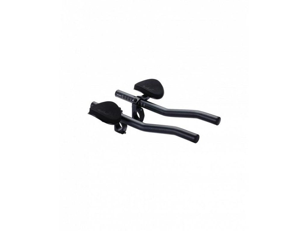 Zweiteiliger Aluminiumlenker für Zeitfahren und Triathlon. Praktischer Klemmmechanismus, kompatibel mit Lenkern mit 26,0/31,8 mm Durchmesser. Schaumstoffpolster. Verstellbare Auszugslänge und zwei Stützpositionen. Gewicht: 470 g. Anleitung.