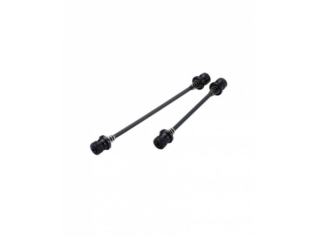 Klemmstangen mit Innensechskantschrauben. Einfacher Schutz vor Diebstahl. Verlängerte Muttern ermöglichen die Verwendung an Mountainbikes und Rennrädern. Robuste und langlebige Edelstahlachse. Gewicht: 78 Gramm.