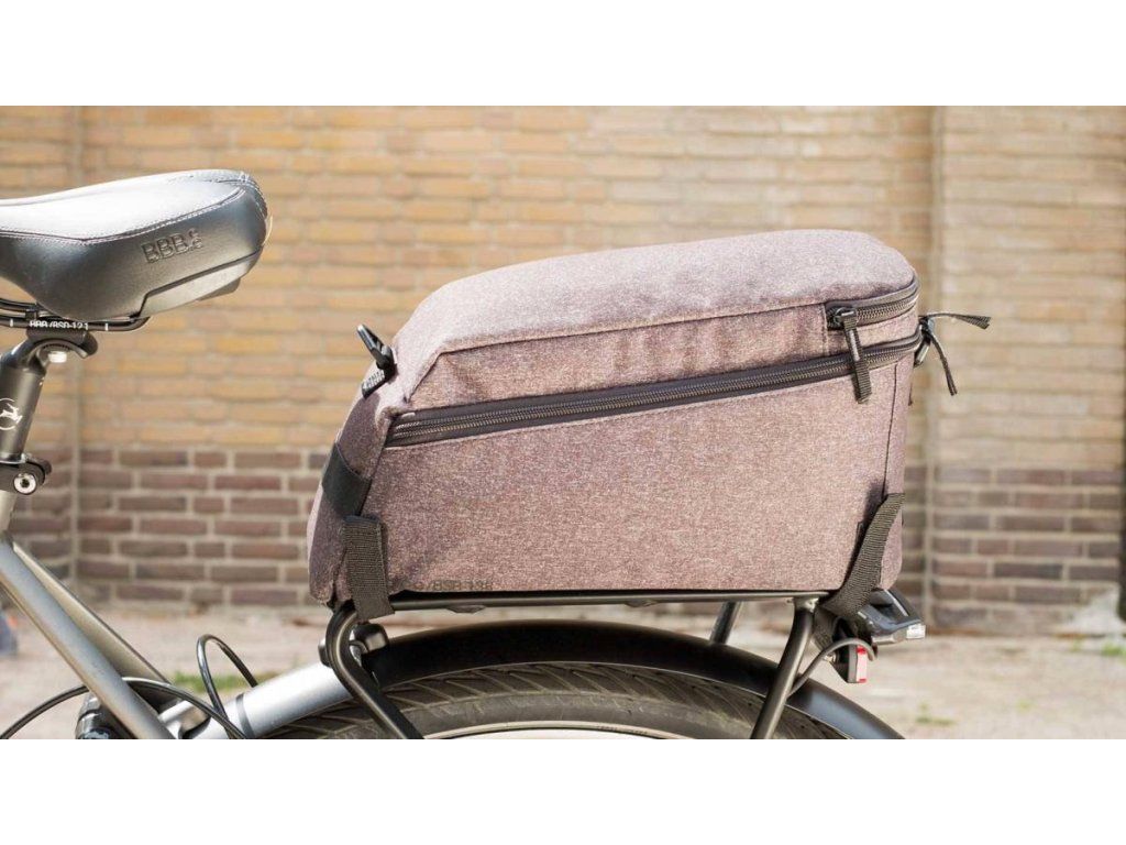Großes Staufach mit schützender Schaumstoffeinlage. Schlaufe hinten für LED-Rücklicht. Vier Klettverschlüsse fixieren die Tasche sicher am Tragegurt und verhindern ein Verrutschen. Verstellbarer und abnehmbarer Schultergurt. Kompatibel mit der Regenhülle (BSB-97) zum Schutz vor Regen und Schmutz. Taschenmaterial: Nylon. Verschluss: Reißverschluss. Befestigung: Klettverschluss. Einfache Montage/Demontage. Volumen: 11.500 cm³. Abmessungen (H x B x T): 160 x 160 x 360 mm. Farbe: Grau meliert.