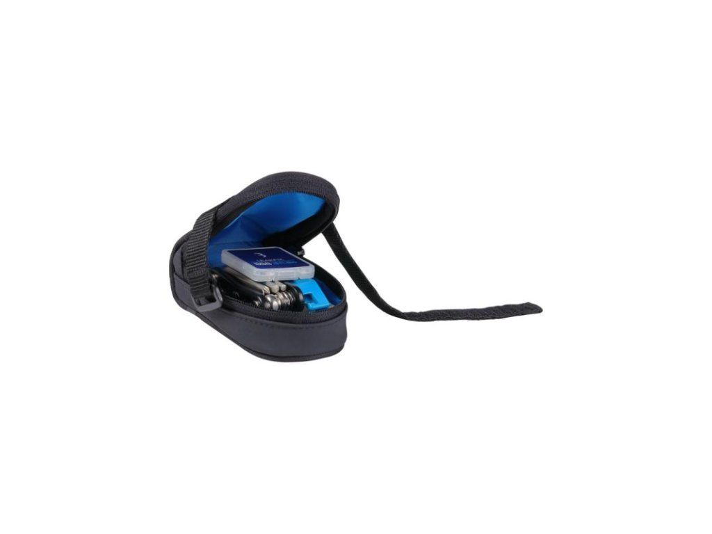Die BSB-14 Satteltasche mit Klettverschlüssen enthält: BTL-40 MiniFold S 9-Funktionen-Multitool, BTL-81 EasyLift Montagehebel, 2 Stück BTL-89 LeakFix selbstklebende Schlauchreparaturflicken. Material: Nylon, Polyester, Plane. Reflektierende Elemente: ja. Wasserabweisendes Material.