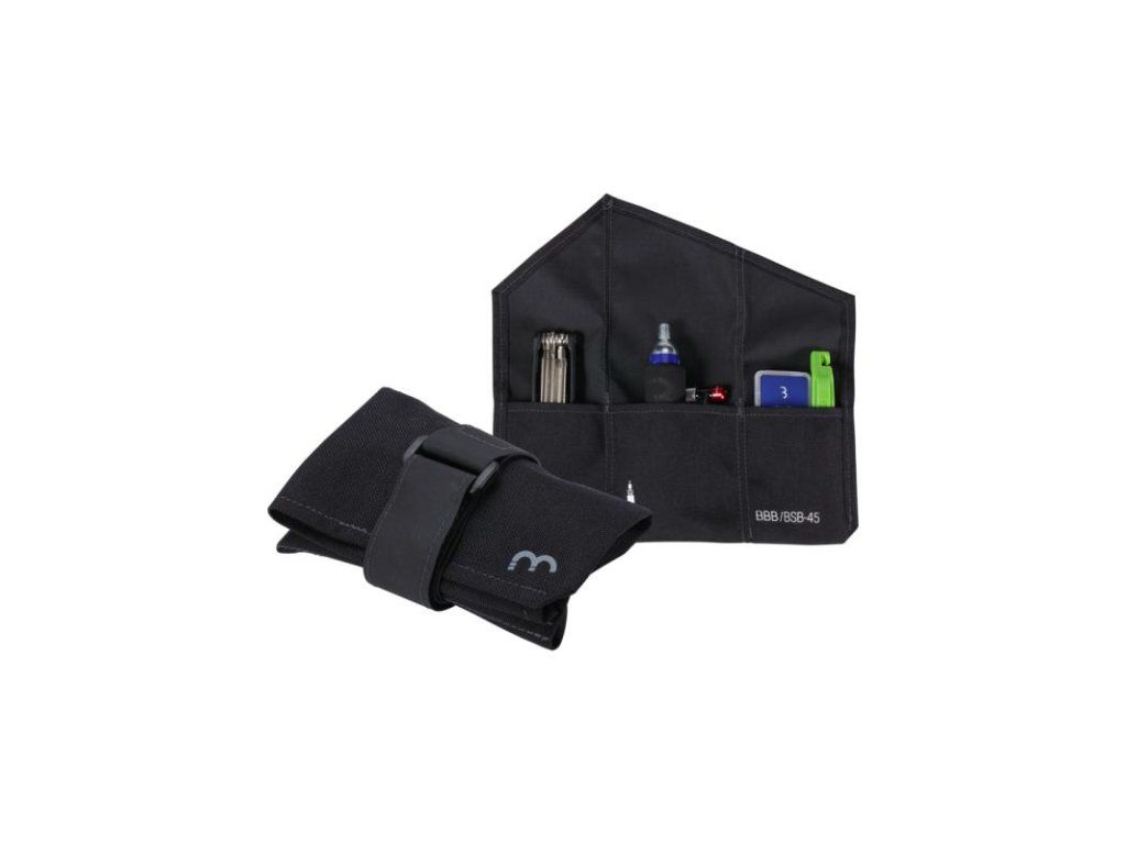 BSB-45 RollPack Unterflur-Rolltasche mit Werkzeug und CO2-Pumpe, Inhalt: BTL-141 MaxiFold S Mini-Funkgerät mit 10 Funktionen, BMP-32 AirSpeed CO2-Pumpe mit CO2-Kartusche und Schutzhülle, BTL-81 EasyLift Reifenheber (2 Stück), BTL-80 LeakFix selbstklebendes Schlauchreparaturset