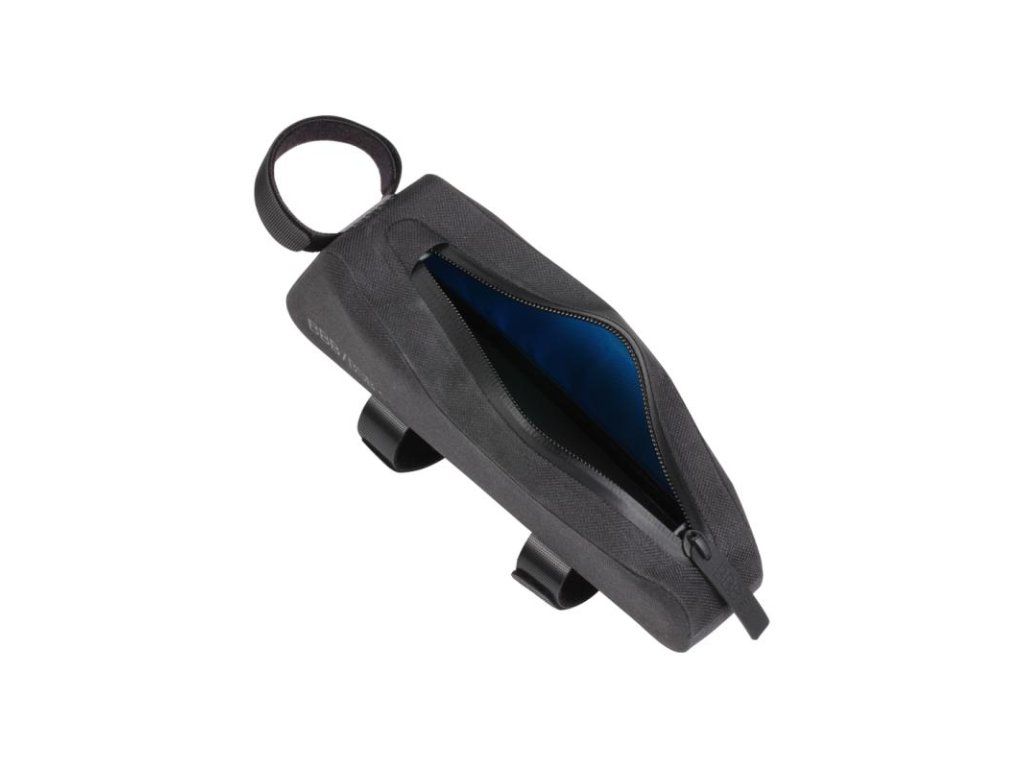 Wasserdichte Tasche mit Befestigung am oberen Rahmenrohr. Wasserdichtes Material und ein nicht einrastender Reißverschluss schützen den Inhalt zusätzlich vor Nässe. Verschweißte Nähte gewährleisten maximalen Schutz. Blaues Innenfutter für bessere Sichtbarkeit des Inhalts. Befestigung am Rahmen mittels abnehmbarer Gurte oder Schrauben. Material: 600D Nylon mit TPU-Beschichtung. Die L-Version verfügt über eine abgedeckte Öffnung für ein Ladekabel oder den Anschluss eines Mobilgeräts sowie eine Netzinnentasche für den Transport eines Mobiltelefons oder anderer kleiner Geräte. Abmessungen: M 210 x 51 x 75 mm, Volumen 0,55 l; L 225 x 60 x 100 mm, Volumen 1,1 l. Gewicht: M 62 g; L 92 g.