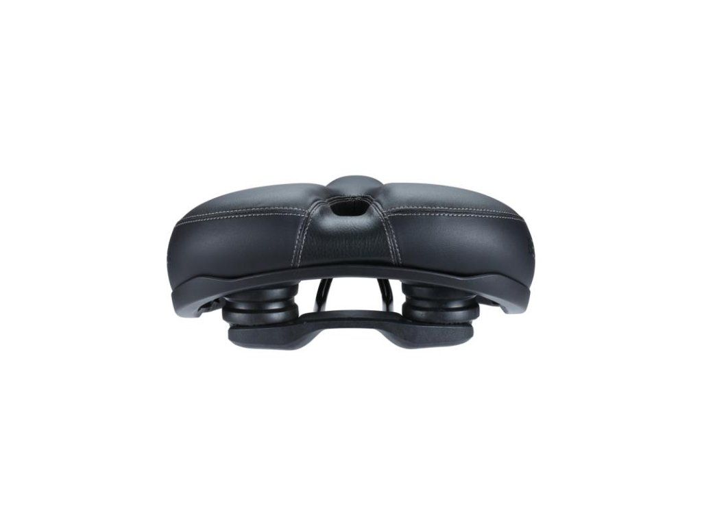 Urbaner Unisex-Sattel für aufrechte Sitzposition mit einer Breite von 225 mm. Große, anatomische Öffnung sorgt für Druckentlastung an empfindlichen Stellen. Superweicher Memory-Schaum für unübertroffenen Komfort. Polypropylen-Sitzschale mit Elastomer-Polsterung und Stoßdämpfern für zusätzlichen Schutz. Strapazierfähiger, zweifarbiger Kunstlederbezug. Sitzposition: Aufrecht (90°). Schienenmaterial: Bor. Bezugsmaterial: Kunstleder. Material: Schaumstoff – Dual Density: PU + Memory-Schaum. Sitzschalenmaterial: PP. Druckentlastungssystem: Anatomische Öffnung. Farbe: Schwarz.