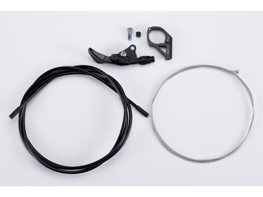 Fernbedienungshebel für Vario-Sattelstützen mit Linkslenkermontage. Inklusive kompletter Verkabelung. Kompatibel mit den meisten Vario-Sattelstützen mit mechanischer Steuerung. Geeignet für externe und interne Kabelführung. Schnelle und einfache Montage an Lenkern mit 22,2 mm Durchmesser. Komplett aus Aluminium gefertigt (AL 6061 T6). Kabelvorspannungseinstellung.
