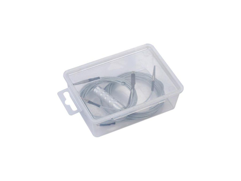 Werkzeug zur internen Kabelverlegung am Rahmen. Das Werkzeug ist mit einem starken Magneten, 4 Einzeladaptern und 2 x 2,5 m langen Kabeln zur magnetischen Montage ausgestattet. Geeignet für die Montage von Schaltzügen, Bremszügen, Bowdenzügen, Hydraulikschläuchen und Di2-Schaltzügen. Kompatibel mit Carbon-, Titan- und Aluminiumrahmen mit Einführungslöchern von mindestens 6 mm Durchmesser.