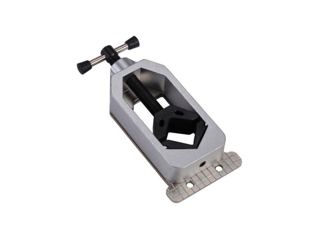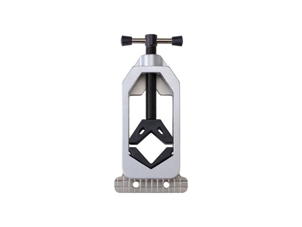 Eine Vorrichtung zum präzisen Schneiden von Gabelhälsen, Sattelstützen und Lenkern, geeignet für runde und aerodynamische Profile. Wird in einen Schraubstock eingespannt. Geeignet für Durchmesser von 21,5 bis 45 mm und aerodynamische Profile von 30 bis 80 mm.