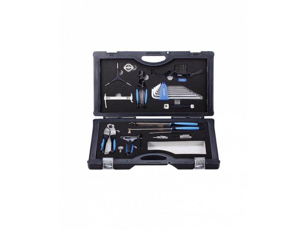 Werkzeugkoffer mit besonders robusten Werkzeugen, darunter die 14 gängigsten Wartungswerkzeuge. Die Schaumstoffeinlage im Inneren sorgt für Ordnung. Zusätzlicher Stauraum bietet Platz für weitere Werkzeuge nach Ihren individuellen Bedürfnissen. Inhalt: BTL-11 Turntable - Kassettenabzieher BTL-15 Turner II - Zentrierschlüssel BTL-125 Chainchecker - Kettenlehre BTL-17 ToothBrush - Reinigungsbürste BTL-28T TorxStar - Torx-Schlüssel BTL-32L BoldGril - Kettenblattschlüssel BTL-104 Driveforce - Serviceschlüssel, kompatibel mit 1/2"-Steckschlüsseln BTL-54 ProfiCut - Kabel- und Bowdenzugzange BTL-55 ProfiConnect - Kettennietzange BTL-77 LinkFix - Kettenschnellspanner BTL-110 Hexplug - 8-mm-Sechskantnuss BTL-118 Hexset - Satz mit 9 L-förmigen Sechskantschlüsseln BTL-79 Profilift - Reifenheber BTL-107S Lockplug - zum Montieren und Demontieren der Shimano HG-Kassettenmutter und Bremsscheiben mit Centerlock-System.