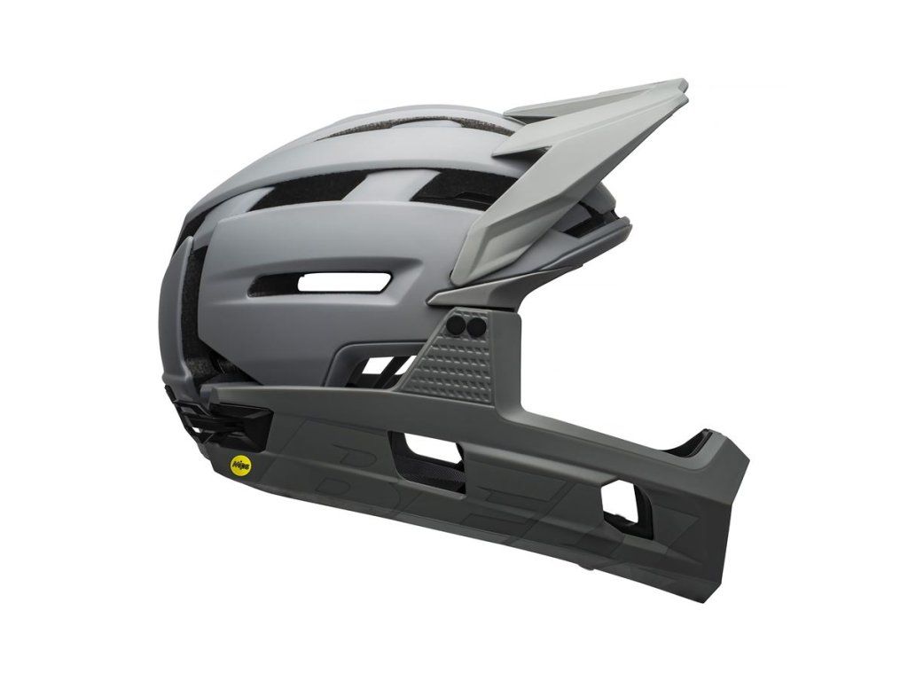Obwohl die Marke Bell unbestreitbar führend im Bereich Helme mit abnehmbarem Kinnschutz ist, versuchen wir ständig, uns selbst zu übertreffen. Das Super Air R Modell ist nicht einfach nur ein gewöhnliches Facelift des Super 3R-Helms. Es ist ein brandneuer Helm, der satte 144 Gramm weniger wiegt. Dazu kommt noch deutlich bessere Belüftung, einfacheres Befestigen mit zwei Schnallen (statt drei) und die innovative Spherical Powered by MIPS-Technologie, die als eine Art Polsterung im Helm wirkt. Tatsächlich besteht der Helm aus zwei Hemisphären: der äußeren aus härterem EPS-Schaum und der inneren aus weicherem EPP-Schaum. Beide sind durch gelbe Elastomere miteinander verbunden und gleiten ähnlich wie ein Gelenk übereinander. Im Falle eines Aufpralls stoppt die äußere Hemisphäre sofort, während die innere Hemisphäre mit ihrem Kopf sich weiter bewegen kann und die Elastomere langsam dämpft. Einfache Federung. MIPS (Multi-Directional Impact Protection System) bietet einen verbesserten Schutz gegen die Wirkung von Rotationskräften auf den Kopf. Mehr dazu unter www. MIP Sprilby.sk BEFESTIGUNGSSYSTEM Schwimmerpassform KONSTRUKTION In-mold Polycarbonat-Gehäuse, progressive Schichtung, abnehmbarer Kinnschutz, kugelförmig betrieben durch MIPS-VENTILATION 26 Löcher, Überbrauenbelüftung Stirnbelüftung VERFÜGT über leichte Polsterung X-Static®, Sweat Guide, verstellbares Etikett, CE EN 1078-Zertifizierung, Motocross-Brillenkompatibilität, GoPro-Montierung GRÖSSE S (52–56 cm), M (55–59 cm), L (58–62 cm)