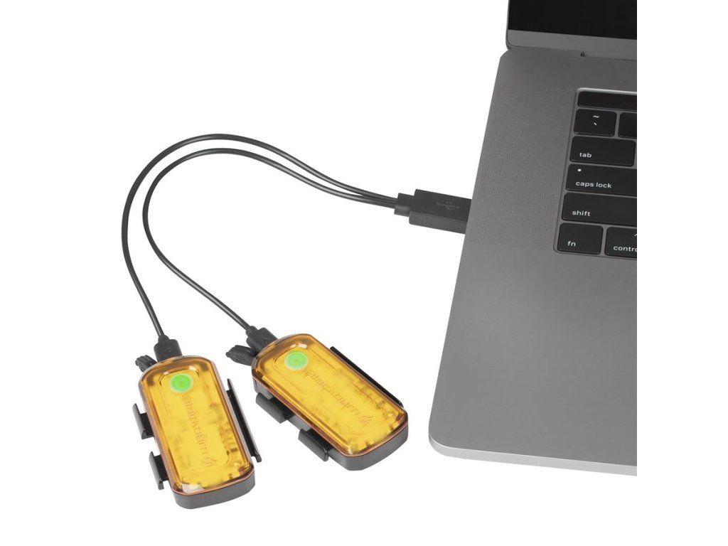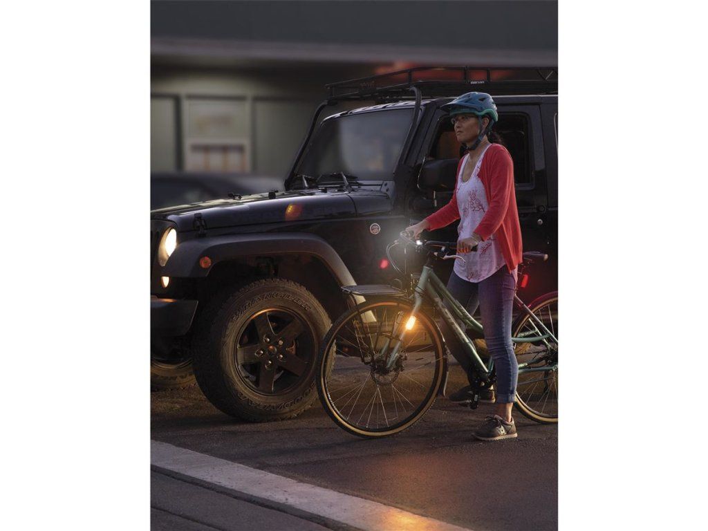 Ein Satz von zwei Seitenleuchten, die auf beiden Seiten der Gabel montiert werden sollten. Gerade bei städtischen Operationen ist es wichtig, von allen Seiten sichtbar zu sein. Laut einer amerikanischen Studie der National Highway Traffic Safety Administration erfolgen 27 % aller Kollisionen zwischen Autos und Radfahrern von der Seite. Die COB-(Chip on Board)-Technologie ist die modernste und effizienteste Lösung. Das Licht wird einfach mit einem Silikonband oder einem Clip befestigt. Das Aufladen erfolgt über ein USB-C-Kabel. IP-65 Wasserschutz. MODEN Hohe 1,5 Stunden (110 Lumen) • Puls 4 Stunden (55 Lumen) +2 Stunden Auto-Eco Laufzeitmodus • Schneller Stroboskop 6 Stunden (40 Lumen) + 2 Stunden Auto-Eco Laufzeitmodus • ECO Flash 20 Stunden (40 Lumen)