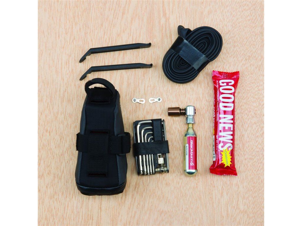 Die perfekte Tasche für Radfahrer für die Seele, Werkzeuge, Befestigungshebel und CO2-Adapter mit Kartusche. ENTHÄLT reflektierende Seiten, Polsterung, Innentasche, Flasher-Loop, wasserdichten Reißverschluss VOLUMEN 0,4 l.