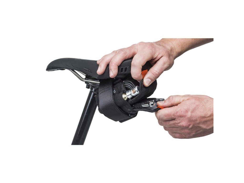 Ein einzigartiges Set von 15 Werkzeugen, darunter ein praktisches Sattelholster – alles ist sofort griffbereit. WERKZEUGE Inbusschlüssel: 2,5 / 3 / 4 / 5 / 6 / 8 mm • Flachkopfschraubendreher • T25- und T30-Torx-Schlüssel • Nietenschlüssel • Zentrierenschlüssel #0, #1 und #2 • Bremsbelagabtrenner.