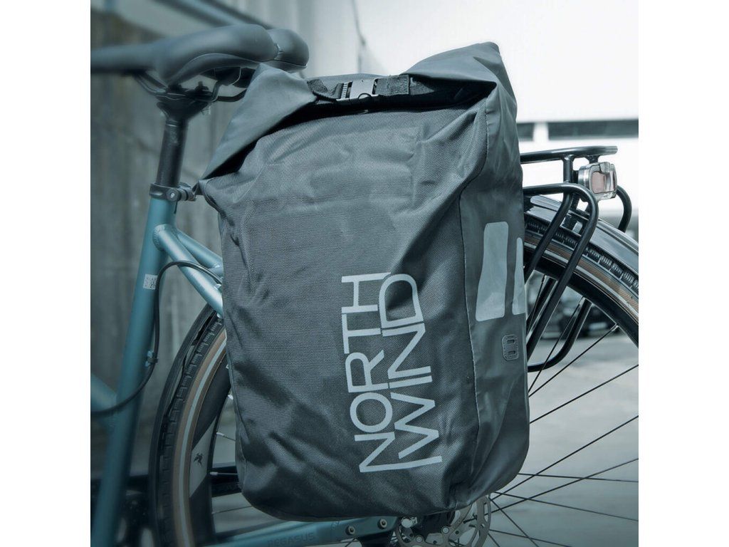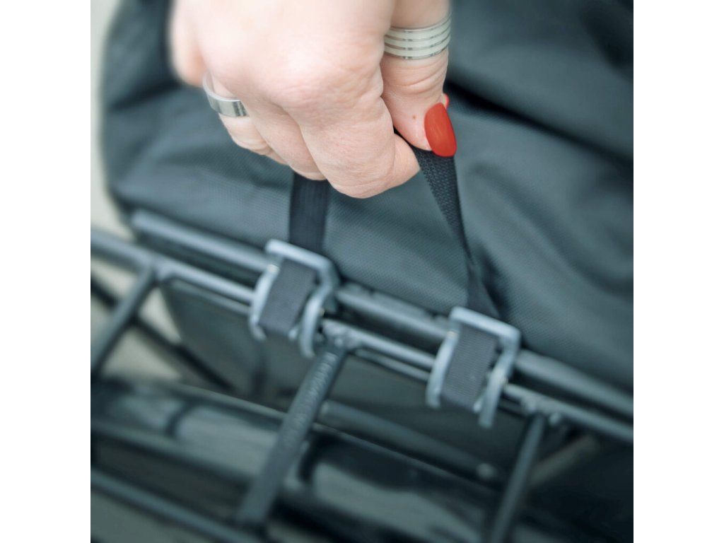 Wasserdichte Tasche für den täglichen Gebrauch. Reflektierende Elemente und eine integrierte Rücklichthalterung sorgen für gute Sichtbarkeit im Straßenverkehr. Befestigung mit selbstsichernden Haken: Die Fahrradtasche lässt sich mithilfe des Vertex-Befestigungssystems einfach an der Seitenstrebe des Gepäckträgers anbringen und individuell anpassen. Die Haken sind selbstsichernd und verhindern ein Herunterfallen der Tasche auf unebenen Straßen. Zum Lösen einfach anheben und am Tragegriff transportieren. • Reflektierende Elemente • Wasserdicht • Rollverschluss • Vertex-Befestigungssystem • Tragegriff