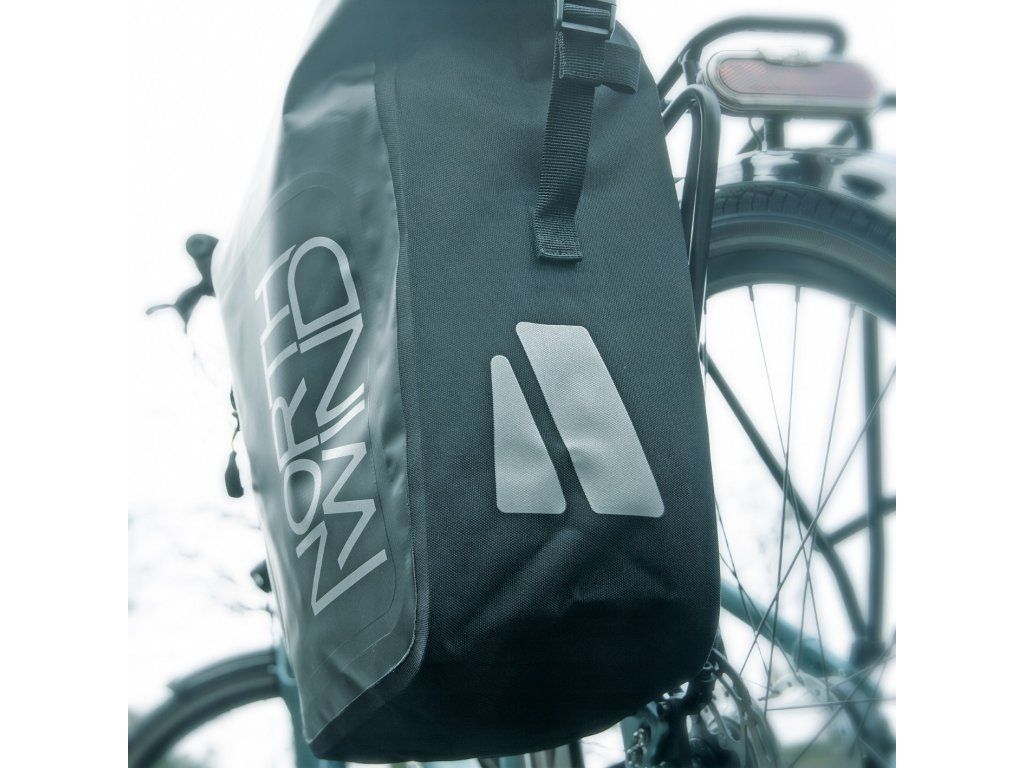 Wasserabweisendes Außenmaterial, verschweißte Reißverschlüsse und ein praktischer Rollverschluss halten den Inhalt zuverlässig trocken. Reflektierende Elemente sorgen für gute Sichtbarkeit im Straßenverkehr. Handy, Schlüssel und Geld sind sicher im äußeren Reißverschlussfach und der inneren Reißverschlusstasche verstaut. Die Seitentasche wird mit dem innovativen MonkeyLoad-S-System befestigt. Die Halterung rastet an der unteren Strebe des Gepäckträgers ein, nicht an der oberen. Der Verriegelungsmechanismus sorgt anschließend für sicheren Halt. Die werkzeuglose Winkelverstellung gewährleistet maximale Beinfreiheit beim Radfahren. Zum Lösen der Tasche ziehen Sie sie einfach nach oben – die Verriegelung öffnet sich automatisch. Dank des gepolsterten Schultergurts lässt sich die Fahrradtasche bequem über der Schulter tragen. • Nur kompatibel mit dem MonkeyLoad-S-System • Befestigung mit MonkeyLoad-Verriegelungsmechanismus • Werkzeuglose Winkelverstellung • Aus wasserdichtem Material mit reflektierendem Aufdruck • Beidseitig montierbar • Gepolsterter Schultergurt