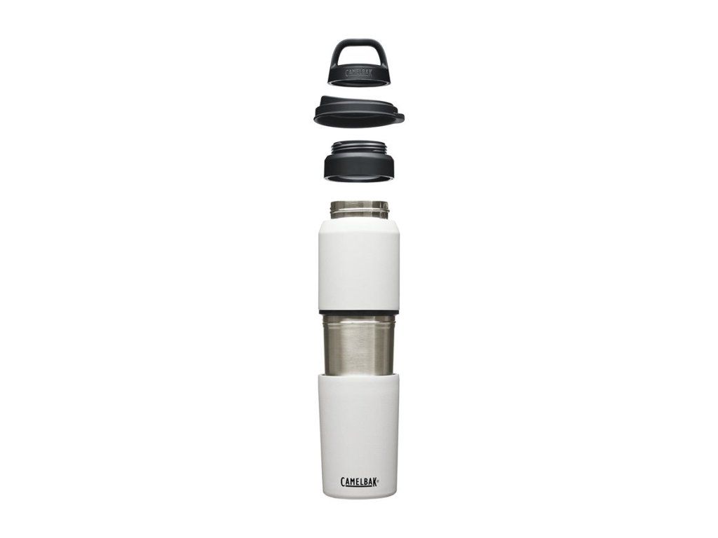 Mit der MultiBev-Flasche bekommst du ein 2-in-1 – sowohl eine Flasche als auch einen Becher zum Trinken auf deinen Reisen. Die doppelte Edelstahlwand, die mit Vakuum gefüllt ist, hält das Getränk über viele Stunden auf der idealen Temperatur. Wenn du möchtest, kannst du es zum Beispiel in die integrierte Tasse gießen und mit deiner Familie teilen. Es gibt sogar einen Silikonverschluss gegen Verlauf für die Tasse, der im Flaschendeckel zusammengerollt ist. Volumen 0,65 l (Flasche) und 0,5 l (Tasse).