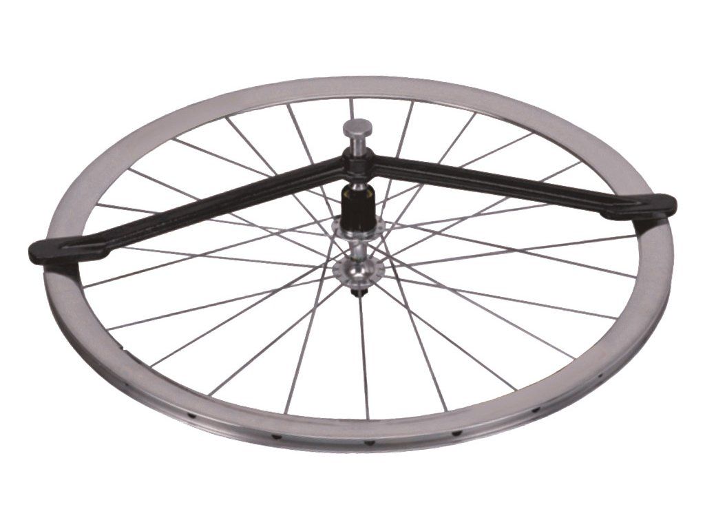 Verwenden Sie diese Lehre, um die Laufräder (Felgen) zu zentrieren. Drehen Sie die Stellschraube so weit heraus, bis beide Messflächen der Lehre an der Felgenseite anliegen. Drehen Sie die Stellschraube dann so weit, bis die Messflächen leicht von der Felgenseite abstehen. Platzieren Sie die Lehre anschließend auf der gegenüberliegenden Seite des Laufrads. Nun können Sie die Achsensymmetrie des Laufrads leicht bestimmen und gegebenenfalls die Speichenspannung auf der entsprechenden Seite anpassen und die Felge zentrieren.