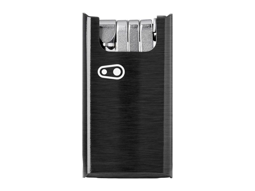 Kompaktes 10-Funktions-Werkzeug in einer eleganten Magnetbox, die gleichzeitig als Griff dient, wenn Sie mehr Hebelwirkung benötigen. Gewicht: 94 g. Werkzeuge: Hochfester Stahl • Inbusschlüssel 2 / 2,5 / 3 / 4 / 5 / 6 / 8 mm • Kreuz- und Schlitzschraubendreher • Torx-Schlüssel T25 • Flaschenöffner