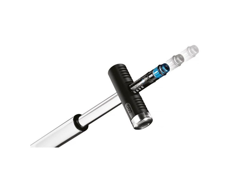 Die luxuriöse Minipumpe mit klappbarem Griff, im Gehäuse integriertem Schlauch und patentiertem Magnetkopf ist für beide Ventilarten geeignet. Sie ist außerdem mit einem Manometer und einem CO₂-Adapter ausgestattet. Eine Rahmenhalterung ist im Lieferumfang enthalten. Gewicht: 186 g, Länge: 260 mm, Maximaldruck: 110 psi / 7,6 bar.