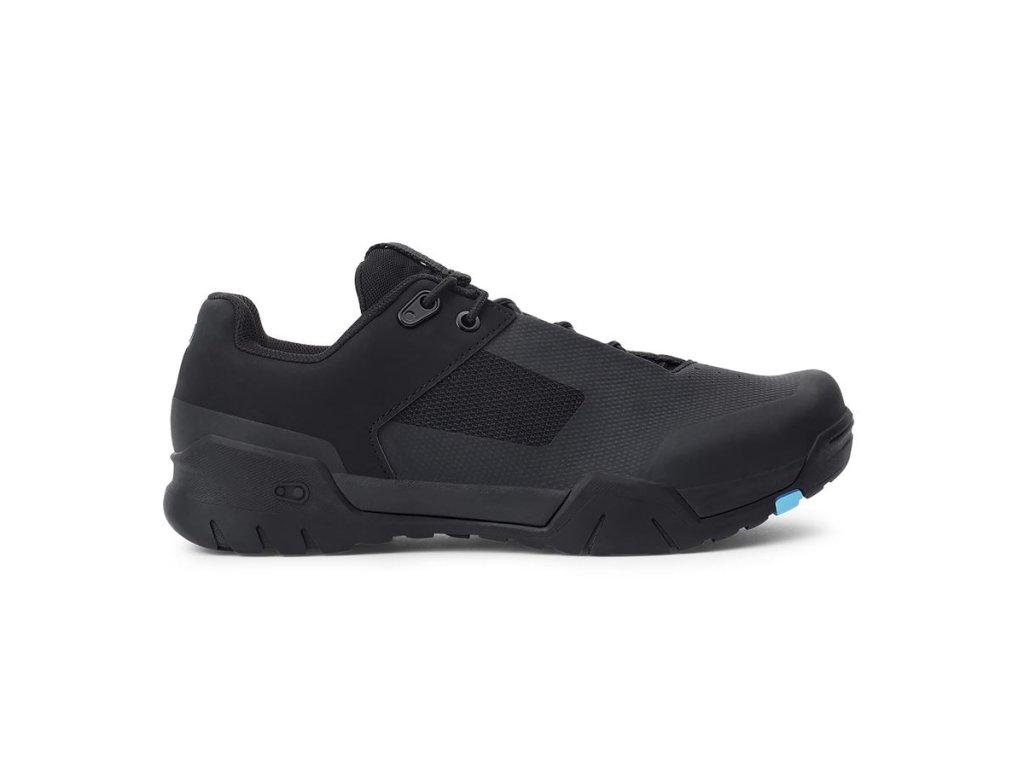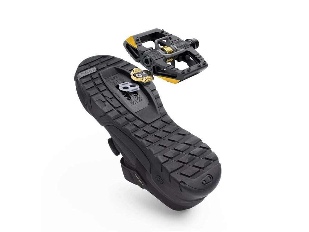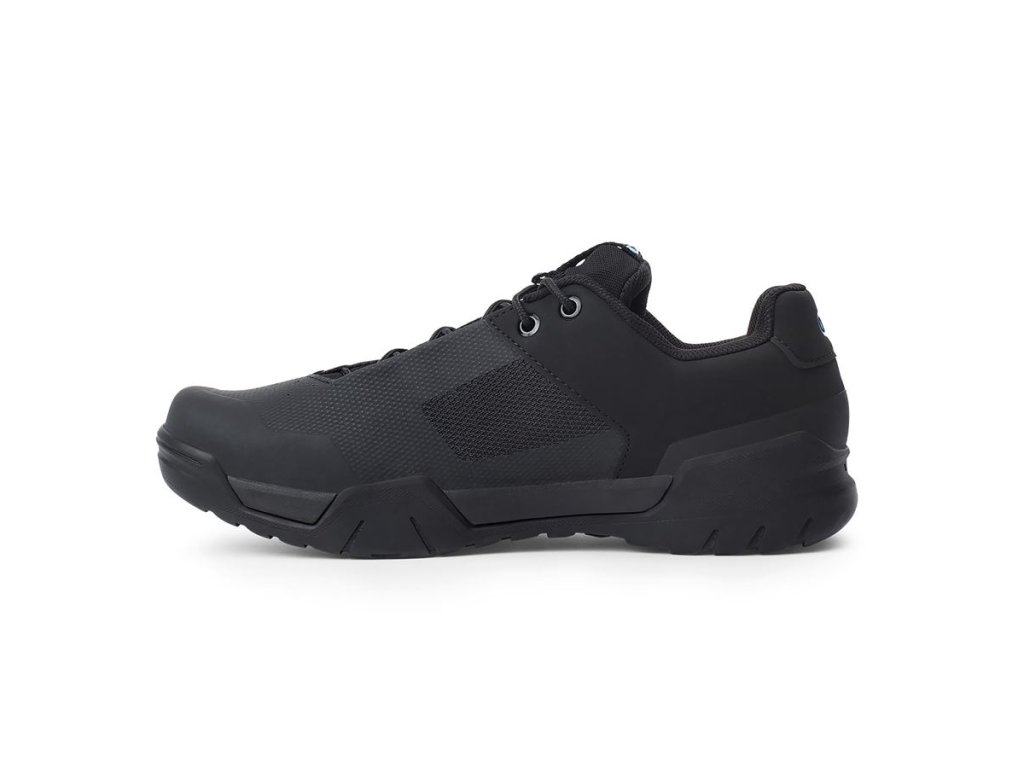 Ein perfekt abgestimmter Enduro-Schuh für Klickpedale. Die MC1-Sohle wurde speziell für Klickpedale entwickelt: Sie bietet eine große Box um die Packtaschen für einfaches Ein- und Ausklicken, selbst im Schlamm, eine steife Einlage unter den Packtaschen für optimale Kraftübertragung auf das Pedal und eine flexiblere Sohle im Zehen- und Fersenbereich. Zusammen mit dem laufrichtungsgebundenen Profil bietet sie Halt beim Bergauf- und Bergabgehen. Eine gepolsterte EVA-Einlage sorgt für Stoßdämpfung. Dank runder Schnürsenkel lässt sich der Schuh leicht schnüren. Atmungsaktives Mesh-Material, eine gepolsterte Zunge mit Schnürsenkeltasche verhindern, dass sich die Schnürsenkel in der Kette verfangen. Gummi an Ferse und Zehen schützt Schuh und Fuß, der Fersenhalt verhindert Ausrutschen. Details im typischen Crankbrothers-Design runden das Design ab. Ein perfekt durchdachter Schuh zum Radfahren und auch zum Gehen neben dem Bike, wenn es auf dem Rad nicht mehr geht. Jetzt gibt es keine Ausreden mehr. Ab aufs Rad! MATERIAL Strapazierfähige Kunstfaser, belüftete Einsätze, verstärkte Gummizonen SOHLE MC1 Compound, Carbonplatte für optimale Kraftübertragung, Ready to Ride: montierte Crankbrothers-Felgen VERSCHLUSSSYSTEM Schnürsenkel, gepolsterte Zunge mit Schnürsenkeltasche, Klettverschluss EINLEGESOHLE EVA GEWICHT 400 g (Größe 42)