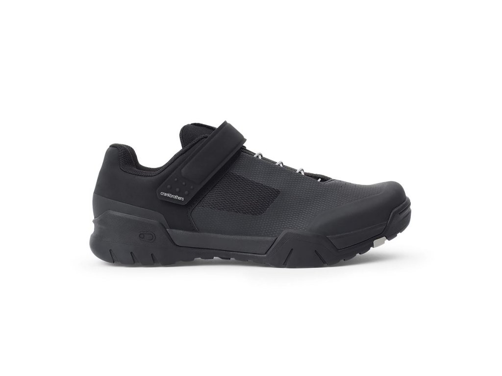 Ein perfekt abgestimmter Enduro-Schuh für Klickpedale. Die MC1-Sohle wurde speziell für Klickpedale entwickelt: Sie bietet eine große Aussparung um die Packtaschen für einfaches Ein- und Ausklicken, selbst im Schlamm. Eine harte Einlage unter den Packtaschen sorgt für optimale Kraftübertragung auf das Pedal. Die flexible Sohle im Zehen- und Fersenbereich bietet zusammen mit dem laufrichtungsgebundenen Profil Halt beim Bergauf- und Bergabgehen. Eine gepolsterte EVA-Einlegesohle dämpft Stöße. Einfaches und schnelles Schnüren, atmungsaktives Mesh-Material, gepolsterte Zunge mit Schnürsenkeltasche, damit sich die Schnürsenkel nicht in der Kette verfangen, Gummi an Ferse und Zehen schützen Schuh und Fuß, rutschfester Fersenhalt und Details im typischen Crankbrothers-Design. Ein perfekt durchdachter Schuh zum Radfahren und auch zum Gehen neben dem Bike, wenn es auf dem Rad nicht mehr geht. Jetzt gibt es keine Ausreden mehr. Ab aufs Rad! MATERIAL Strapazierfähige Kunstfaser, belüftete Einsätze, verstärkte Gummizonen SOHLE MC1 Compound, Carbonplatte für optimale Kraftübertragung, Ready to Ride: montierte Crankbrothers-Felgen VERSCHLUSSSYSTEM Speedlace-Schnürsenkel, gepolsterte Zunge mit Schnürsenkeltasche, Klettverschluss EINLEGESOHLE EVA GEWICHT 460 g (Größe 42)