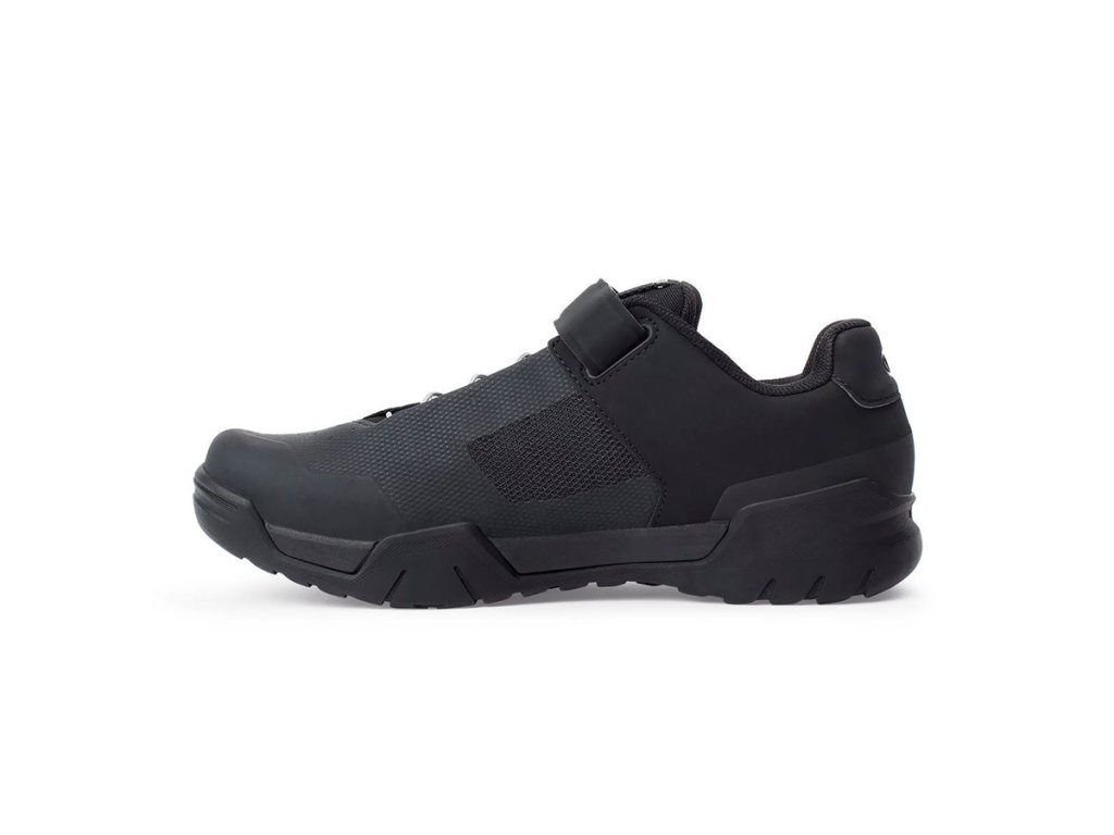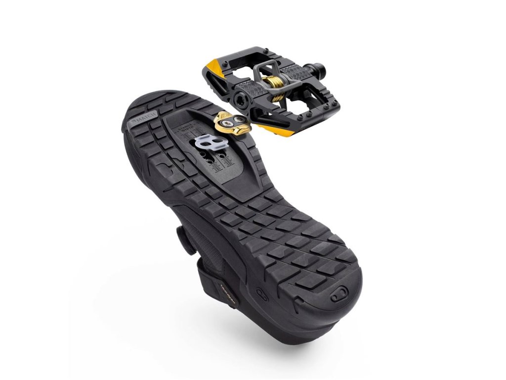 Ein perfekt abgestimmter Enduro-Schuh für Klickpedale. Die MC1-Sohle wurde speziell für Klickpedale entwickelt: Sie bietet eine große Aussparung um die Packtaschen für einfaches Ein- und Ausklicken, selbst im Schlamm. Eine harte Einlage unter den Packtaschen sorgt für optimale Kraftübertragung auf das Pedal. Die flexible Sohle im Zehen- und Fersenbereich bietet zusammen mit dem laufrichtungsgebundenen Profil Halt beim Bergauf- und Bergabgehen. Eine gepolsterte EVA-Einlegesohle dämpft Stöße. Einfaches und schnelles Schnüren, atmungsaktives Mesh-Material, gepolsterte Zunge mit Schnürsenkeltasche, damit sich die Schnürsenkel nicht in der Kette verfangen, Gummi an Ferse und Zehen schützen Schuh und Fuß, rutschfester Fersenhalt und Details im typischen Crankbrothers-Design. Ein perfekt durchdachter Schuh zum Radfahren und auch zum Gehen neben dem Bike, wenn es auf dem Rad nicht mehr geht. Jetzt gibt es keine Ausreden mehr. Ab aufs Rad! MATERIAL Strapazierfähige Kunstfaser, belüftete Einsätze, verstärkte Gummizonen SOHLE MC1 Compound, Carbonplatte für optimale Kraftübertragung, Ready to Ride: montierte Crankbrothers-Felgen VERSCHLUSSSYSTEM Speedlace-Schnürsenkel, gepolsterte Zunge mit Schnürsenkeltasche, Klettverschluss EINLEGESOHLE EVA GEWICHT 460 g (Größe 42)