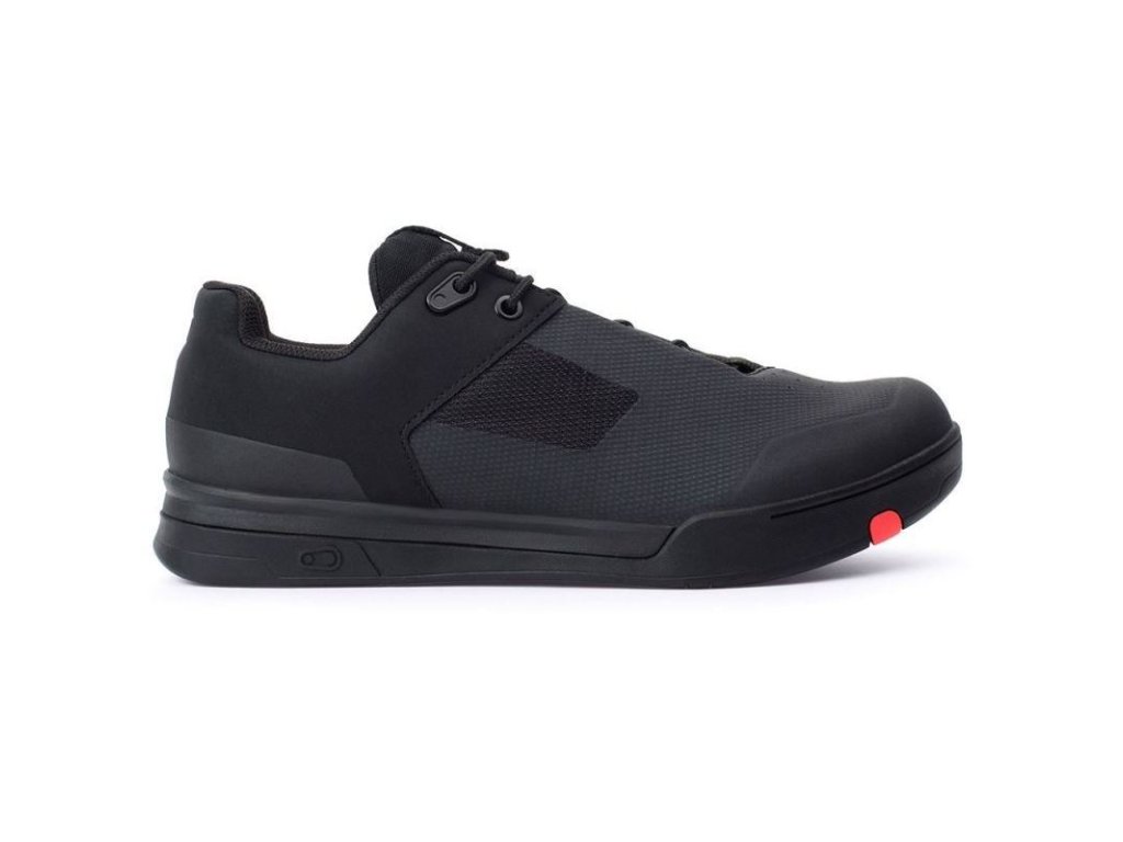Ein Downhill-Schuh, der auf Sieg ausgelegt ist. Die MC1-Sohle wurde speziell für Klickpedale entwickelt: Sie bietet viel Platz um die Packtaschen für einfaches Ein- und Ausklicken, selbst im Schlamm. Die Packtaschen-Befestigungspunkte sind für besonders aggressives Downhill-Fahren nach hinten versetzt, und eine steife Einlage unter den Packtaschen sorgt für optimale Kraftübertragung auf die Pedale. Die Sohle im Zehen- und Fersenbereich ist flexibler und bietet zusammen mit dem laufrichtungsgebundenen Profil Halt beim Bergauf- und Bergabgehen. Eine gepolsterte EVA-Einlage dämpft Stöße. Dank runder Schnürsenkel lässt sich der Schuh leicht schnüren. Atmungsaktives Mesh-Material, eine gepolsterte Zunge mit Schnürsenkeltasche verhindern, dass sich die Schnürsenkel in der Kette verfangen. Gummi an Ferse und Zehen schützt Schuh und Fuß. Fersenhalt und Details im typischen Crankbrothers-Design runden das Design ab. Perfekt durchdachte Schuhe zum Radfahren und auch zum Gehen neben dem Rad, wenn es mal nicht auf dem Rad geht. Jetzt gibt es keine Ausreden mehr. Ab aufs Rad! MATERIAL Strapazierfähige Synthetikfaser, belüftete Einsätze, verstärkte Gummizonen SOHLE MC1 Compound, Ready to ride: Crankbrothers-Schlauchschlaufen montiert VERSCHLUSSSYSTEM Schnürsenkel, gepolsterte Zunge mit Schnürsenkeltasche, Klettverschluss EINLEGESOHLE EVA GEWICHT 400 g (Größe 42)