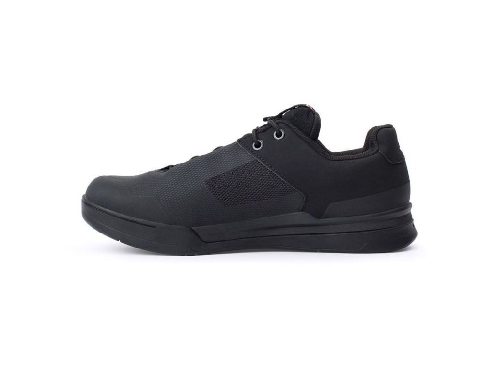 Ein Downhill-Schuh, der auf Sieg ausgelegt ist. Die MC1-Sohle wurde speziell für Klickpedale entwickelt: Sie bietet viel Platz um die Packtaschen für einfaches Ein- und Ausklicken, selbst im Schlamm. Die Packtaschen-Befestigungspunkte sind für besonders aggressives Downhill-Fahren nach hinten versetzt, und eine steife Einlage unter den Packtaschen sorgt für optimale Kraftübertragung auf die Pedale. Die Sohle im Zehen- und Fersenbereich ist flexibler und bietet zusammen mit dem laufrichtungsgebundenen Profil Halt beim Bergauf- und Bergabgehen. Eine gepolsterte EVA-Einlage dämpft Stöße. Dank runder Schnürsenkel lässt sich der Schuh leicht schnüren. Atmungsaktives Mesh-Material, eine gepolsterte Zunge mit Schnürsenkeltasche verhindern, dass sich die Schnürsenkel in der Kette verfangen. Gummi an Ferse und Zehen schützt Schuh und Fuß. Fersenhalt und Details im typischen Crankbrothers-Design runden das Design ab. Perfekt durchdachte Schuhe zum Radfahren und auch zum Gehen neben dem Rad, wenn es mal nicht auf dem Rad geht. Jetzt gibt es keine Ausreden mehr. Ab aufs Rad! MATERIAL Strapazierfähige Synthetikfaser, belüftete Einsätze, verstärkte Gummizonen SOHLE MC1 Compound, Ready to ride: Crankbrothers-Schlauchschlaufen montiert VERSCHLUSSSYSTEM Schnürsenkel, gepolsterte Zunge mit Schnürsenkeltasche, Klettverschluss EINLEGESOHLE EVA GEWICHT 400 g (Größe 42)