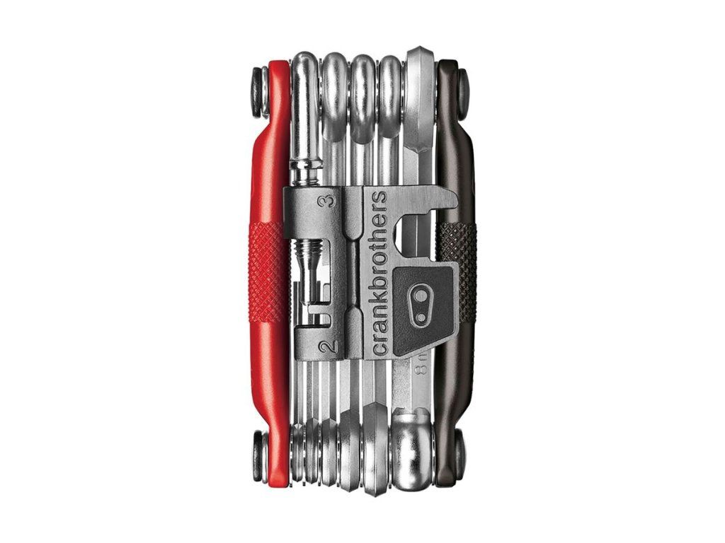 Leichtes 17-Funktionen-Werkzeug. Gewicht: 168 g. Länge: 89 mm. Material: Duraluminium 6061 T6. Werkzeug: hochfester Stahl. Nietzange: für 8/9/10/11/12-fach Ketten. Zentrierschlüssel: Nr. 0, Nr. 1, Nr. 2 und Nr. 3. Innensechskantschlüssel: 2 / 2,5 / 3 / 4 / 5 / 6 / 8 mm. Schraubendreher: Kreuzschlitz und Schlitz. Torx-Schlüssel: T25.