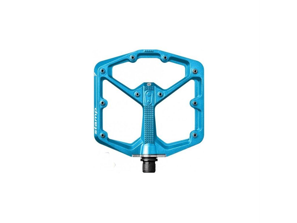 Plattformpedal in zwei Größen für verschiedene Schuhgrößen. Minimales Profil 11–13 mm. Gewicht 375 g. PLATTFORM: Aluminium 6061-T6 (114 x 111 mm, für Schuhgröße 43–49). ACHSE: Cr-Mo-Stahl 435. INNENLAGER: Igus LL Gleithülse. PINS: 10 pro Seite, austauschbar. TESTS IN DEN MEDIEN: http://www.bikeandride.sk/2016/11/pedaly-crankbrothers-stamp-large-prakticke-predstavene/