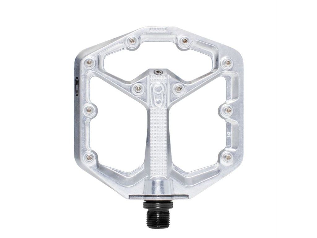 Plattformpedal in zwei Größen für verschiedene Schuhgrößen. Minimales Profil 11–13 mm. Gewicht 375 g. PLATTFORM: Aluminium 6061-T6 (114 x 111 mm, für Schuhgröße 43–49). ACHSE: Cr-Mo-Stahl 435. INNENLAGER: Igus LL Gleithülse. PINS: 10 pro Seite, austauschbar. TESTS IN DEN MEDIEN: http://www.bikeandride.sk/2016/11/pedaly-crankbrothers-stamp-large-prakticke-predstavene/