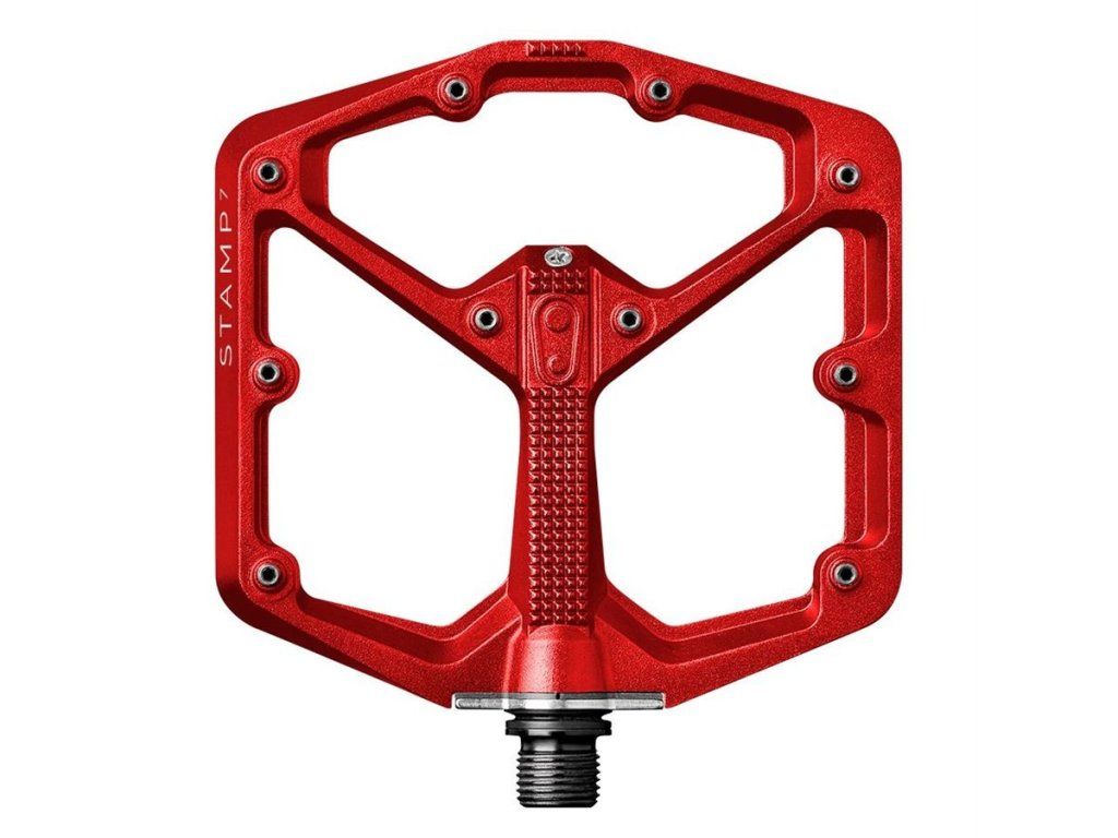 Plattformpedal in zwei Größen für verschiedene Schuhgrößen. Minimales Profil 11–13 mm. Gewicht 375 g. PLATTFORM: Aluminium 6061-T6 (114 x 111 mm, für Schuhgröße 43–49). ACHSE: Cr-Mo-Stahl 435. INNENLAGER: Igus LL Gleithülse. PINS: 10 pro Seite, austauschbar. TESTS IN DEN MEDIEN: http://www.bikeandride.sk/2016/11/pedaly-crankbrothers-stamp-large-prakticke-predstavene/