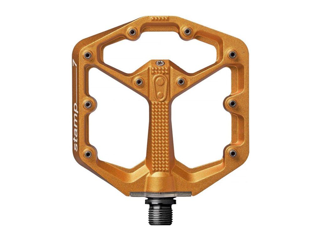 Plattformpedal in zwei Größen für verschiedene Schuhgrößen. Minimales Profil 11–13 mm. Gewicht: 345 g. Plattform: Aluminium 6061-T6 (100 x 100 mm, für Schuhgrößen 37–43). Achse: Cr-Mo-Stahl 435. Innenlager: Igus LL Gleitlager. Pins: 10 pro Seite, austauschbar. Testberichte in den Medien: http://www.bikeandride.cz/2016/11/pedaly-crankbrothers-stamp-large-prakticke-predstaveni/