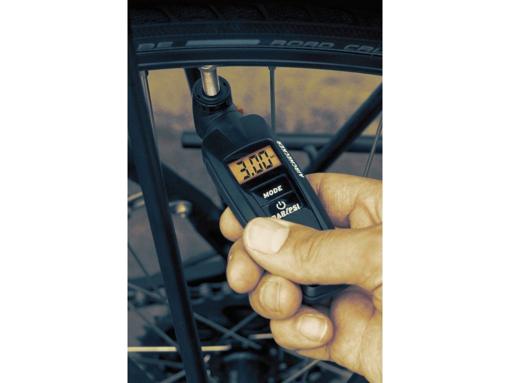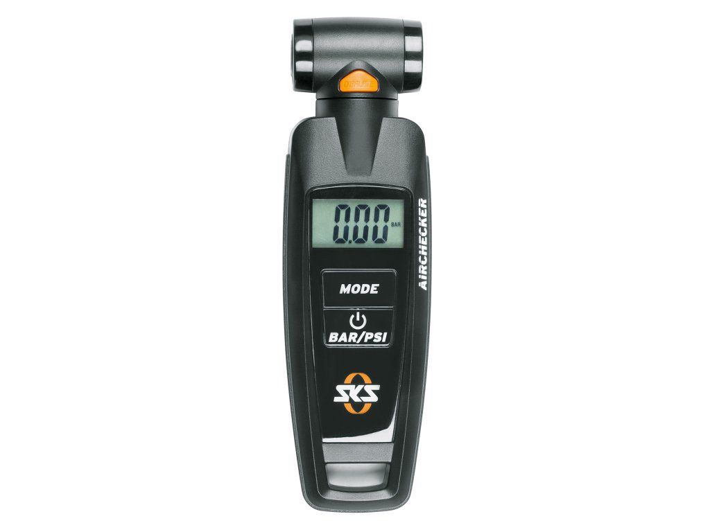 Digitales SKS-Manometer zur Druckmessung, geeignet für alle Ventilarten. Ein praktisches Merkmal ist die Displaybeleuchtung. • Drehbarer Doppelkopf für Auto- und Reifenventile • Displaybeleuchtung • Druckentlastungstaste • Taste zum Ein- und Ausschalten sowie zum Umschalten zwischen PSI und BAR • Automatische Abschaltung nach der Messung • Inklusive Schutzkoffer • CR 2032 Batterie
