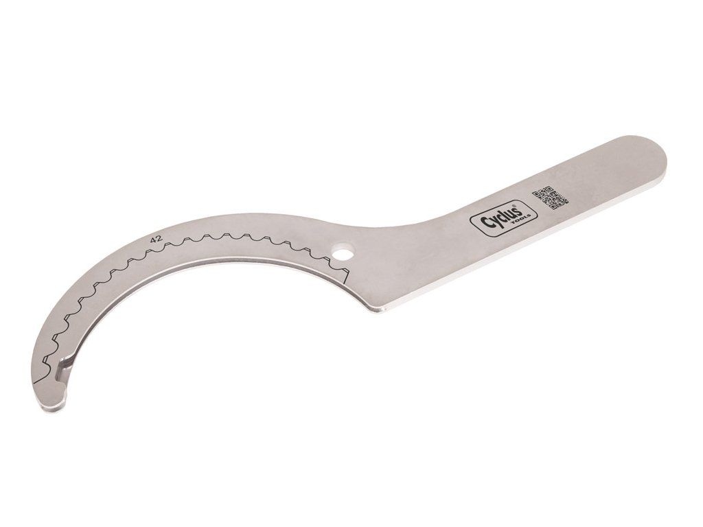 Verwenden Sie den Ritzelschlüssel, um Kassetten oder Ritzel beim Ausbau sicher zu fixieren. Haken Sie die Schraube des Werkzeugs über das Ritzel und führen Sie sie an der gefrästen Nut in den Zähnen entlang. Mit geeigneten Abziehern lässt sich auch der Kassetten-Sicherungsring leicht lösen. Geeignet zum Ausbau von Kassetten und Ritzeln. Passend für 42-Zahn-Kassetten SRAM X1 und X01. Farbe: Silber