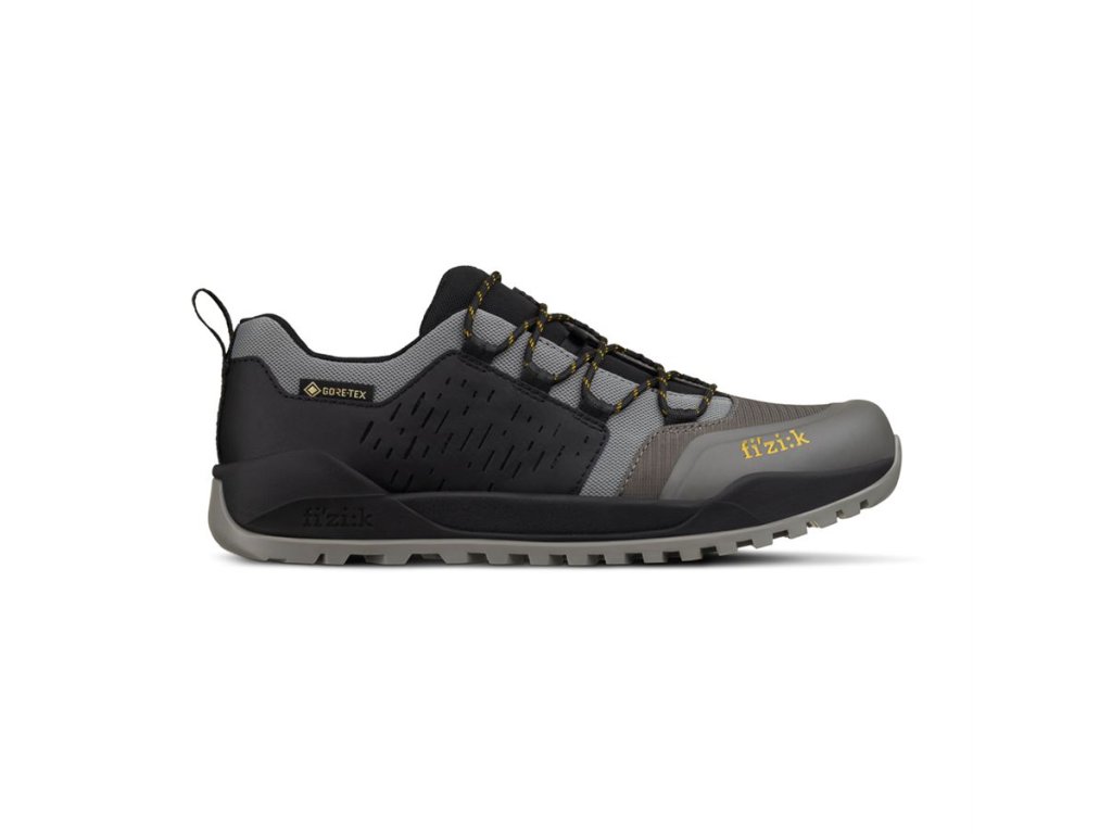 Der Terra Ergolace X2 ist die Gore-Tex-Plattformversion des beliebten Universalschuhs Fizik für anspruchsvollere Bedingungen. Die GORE-TEX-Membran ist wasserdicht und atmungsaktiv zugleich, das Obermaterial besteht aus strapazierfähigem Material. Der Terra Ergolace X2 ist ein Mountainbike-Schuh, der sowohl für technische Trail-Touren als auch für die Kombination aus Radfahren und Wandern bei einem Sonntagsausflug mit der Familie geeignet ist. Er ist ein robuster, funktionaler Schuh, der sich auf die Wurzeln des Radsports besinnt – er ermöglicht es, zu erobern, zu entdecken und Spaß zu haben. Gemeinsam mit dem Fahrer meistert er jedes Terrain, bergauf und bergab, auf und abseits des Bikes. Das hochfeste Ripstop-Gewebe schützt den Schuh vor Rissen und den Fuß vor Verletzungen. Die Vibram-Sohle mit ihrem markanten Profil bietet hervorragenden Grip auf dem Bike und beim Gehen, beispielsweise beim Abstieg über Treppen oder beim Erkunden von Burgruinen. Die außenliegende Schnürung mit Schnürsenkelschlaufe erhöht die Sicherheit beim Fahren und verhindert, dass die Schnürsenkel stören. Die belüftete Zunge sorgt für optimale Luftzirkulation im Schuh. Verstärktes Microtex-Material, strapazierfähiges Ripstop-Gewebe, X2 Vibram-Sohle, Schnürsystem, Zunge mit Schnürsenkelschlaufe, fi'zi:k-Innensohle, Gewicht 329 g (42,5).