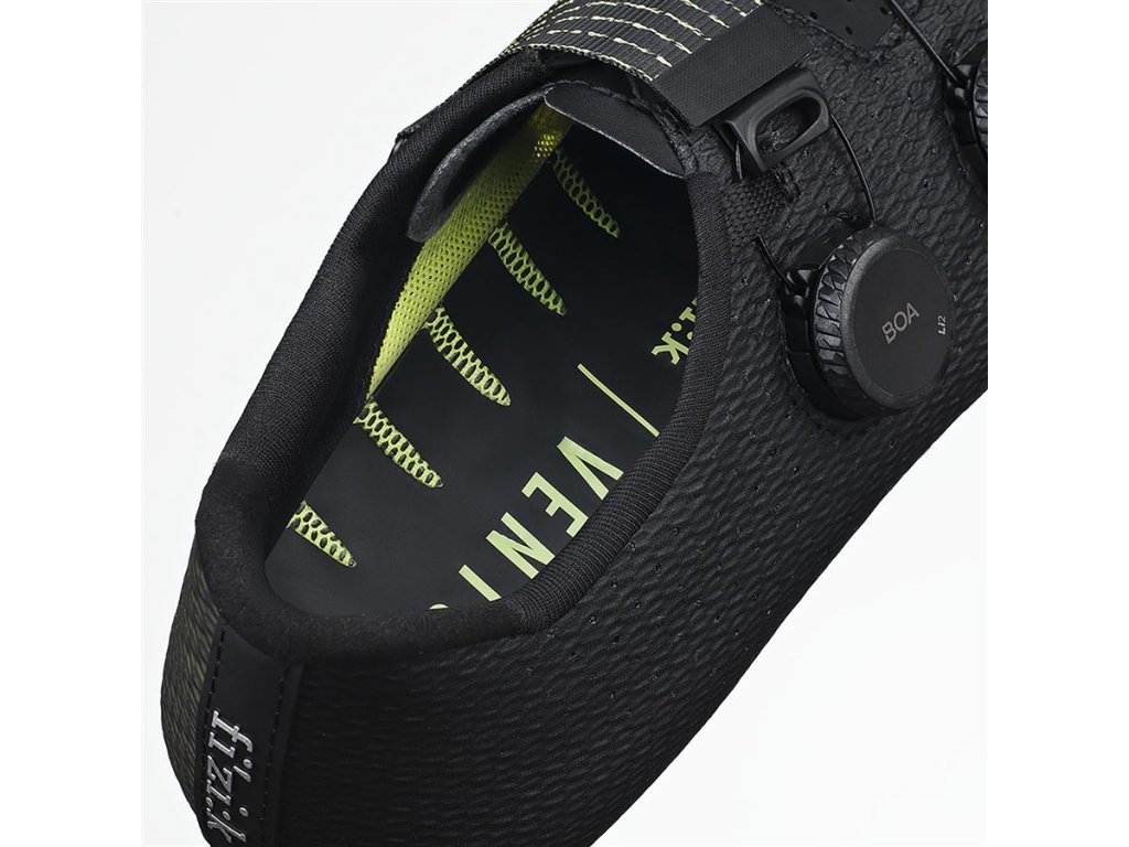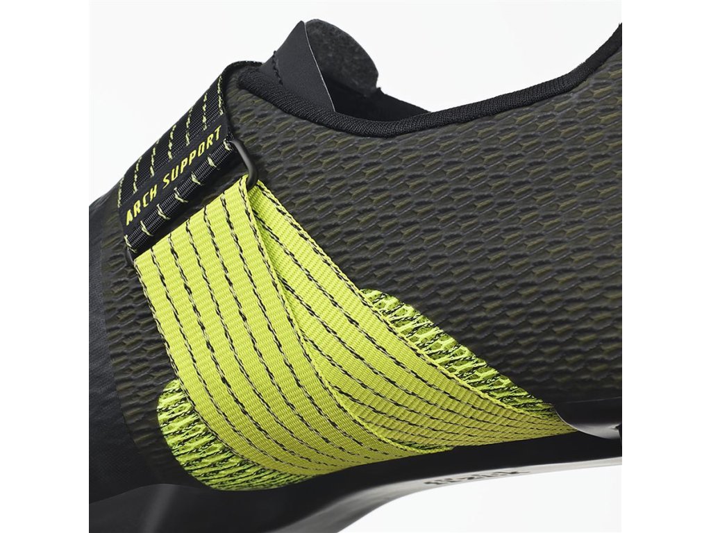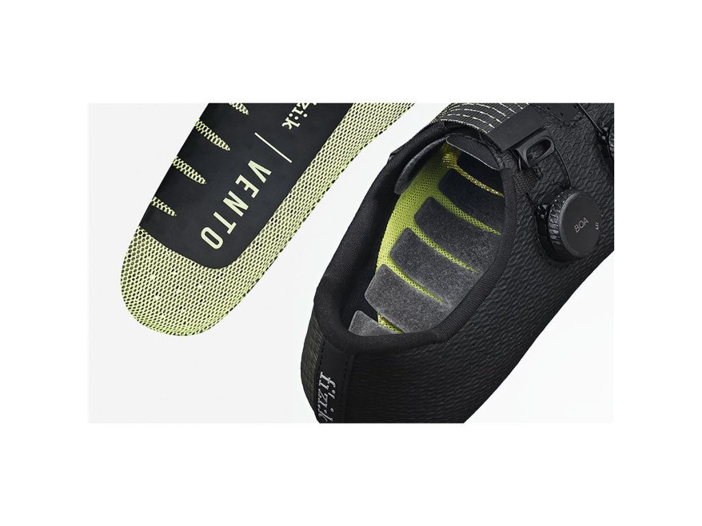 Der Vento Stabilita Carbon ist ein Rennradschuh, der auf optimale Fußstabilität und perfekte Kraftübertragung auf die Pedale ausgelegt ist. Die Fußstabilität wird durch unser einzigartiges Fußgewölbestützsystem Dynamic Arch Support 2.0 gewährleistet. Dank dieses Systems passt sich der Schuh perfekt an den Fuß des jeweiligen Fahrers an, sodass dieser sich voll und ganz auf das Fahren konzentrieren kann. Das Geheimnis liegt im einzigartigen Sohlendesign: Die Sohle ist schmaler, und das Fußgewölbe wird durch ein Riemensystem stabilisiert, das mit neuen, flacheren und leichteren BOA-Drehverschlüssen fixiert wird. Ober- und Unterteil des Schuhs mit Volumenkontrolle lassen sich unabhängig voneinander anpassen und umschließen den Fuß perfekt ohne unangenehme Druckstellen. Das Ganze verpackt in einem außergewöhnlichen Fizik-Design, das Ihnen bei jeder Fahrt bewundernde Blicke einbringen wird. Material: Strapazierfähige Synthetikfaser mit belüfteten Lamellen, Sohle: Voll-UD-Carbon, belüftet, Steifigkeitsindex 10, Verschlusssystem: Double Infinito Boa Li2, Einlegesohle: Vento, Gewicht: 227 g (Größe 42,5), Größen: 42–46.