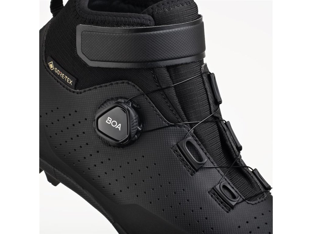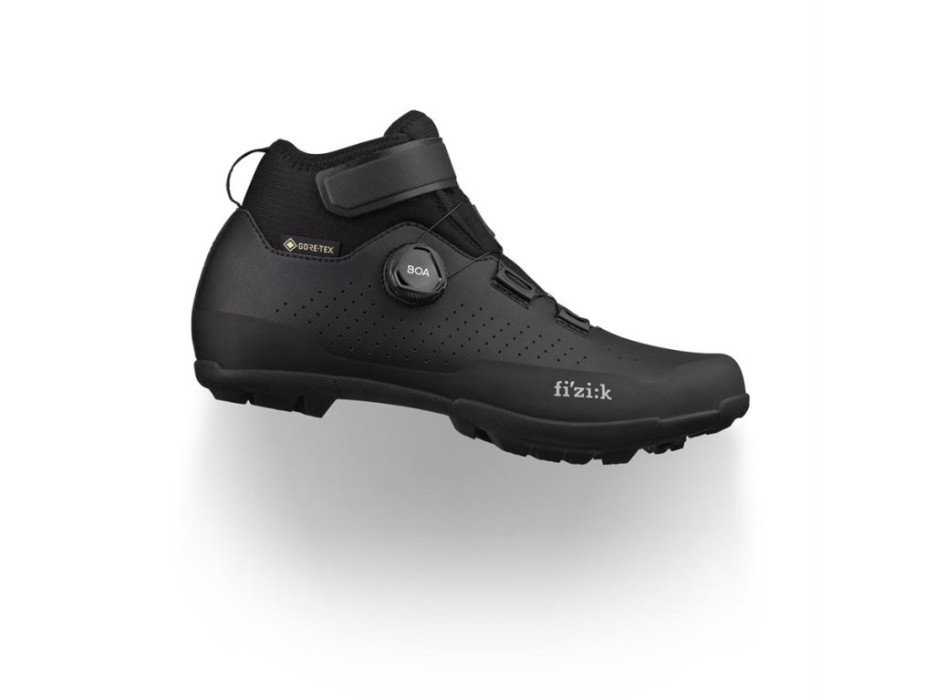 Vollständig isoliert, wasserdicht und gleichzeitig atmungsaktiv: Die neuen Winterstiefel von Fizik für jedes Terrain sind für extreme Wetterbedingungen gerüstet und schützen Sie selbst bei widrigsten Bedingungen – egal ob auf verschneiten Pfaden, durch nasse Wälder oder über Schotterwege! Dank der GORE-TEX Koala Membran sind die Artica GTX Schuhe wasserdicht. Diese Membran lässt kein Wasser eindringen und leitet gleichzeitig Feuchtigkeit nach außen ab. Mit dem benutzerfreundlichen BOA-Drehverschluss und dem Klettverschluss lassen sich die Schuhe auch mit warmen Winterhandschuhen schnell anziehen. Die Sohle mit einem Steifigkeitsindex von 5 ist verbreitert und gummiert und bietet so auch auf eisigen Oberflächen optimale Stabilität. Das Innere des Schuhs, inklusive der Innensohle, ist mit Fleece gepolstert und sorgt so für angenehmen Tragekomfort selbst an den kältesten Tagen. Der Artica GTX ist ein idealer Winter-MTB-Schuh, in dem Ihre Füße auch beim Durchqueren von Bächen nicht schwitzen oder nass werden. Hauptmerkmale: GORE-TEX KOALA Membran: Die isolierende, wasserdichte und atmungsaktive GORE-TEX Koala Membran hält Ihre Füße warm und trocken. FLEECE-POLSTERUNG: Fleece sorgt auch an den kältesten Wintertagen für ausreichend Wärme und Komfort. GANZTÄGIGER KOMFORT: Hervorragende Passform und einfache Anpassung dank BOA-Drehverschluss und R5-Dry-Tape. NYLON-Sohle: Optimierte Position für Cleats und mittlere Sohlensteifigkeit. Lesen Sie die Fizik Artica Cleat-Tests auf der Pinkbike-Website: https://www.pinkbike.com/news/review-fiziks-artica-gtx-winter-clipless-shoes.html Positive Aspekte laut Tester: + Hervorragende Winterbeständigkeit ohne Kompromisse bei der Atmungsaktivität + Hochwertige Verarbeitung und Materialien + Großer Einstellbereich für Cleats ...und auch die slowakische Perspektive im MTBS-Test: https://mtbs.sk/clanek/test-fi-zik-terra-artica-x5-gtx/kategorie/doplnky-na-bicykel MATERIAL: GORE-TEX Koala Membran (wasserdichte und atmungsaktive Membran), verstärkte Microtex SOLE X5 Nylon, gummiert, Steifigkeitsindex 5, Verschlusssystem BOA L6 und Klettverschluss, Innensohle fi'zi:ks mit Fleece-Finish, Gewicht 382 g (42,5), Größen 41–47