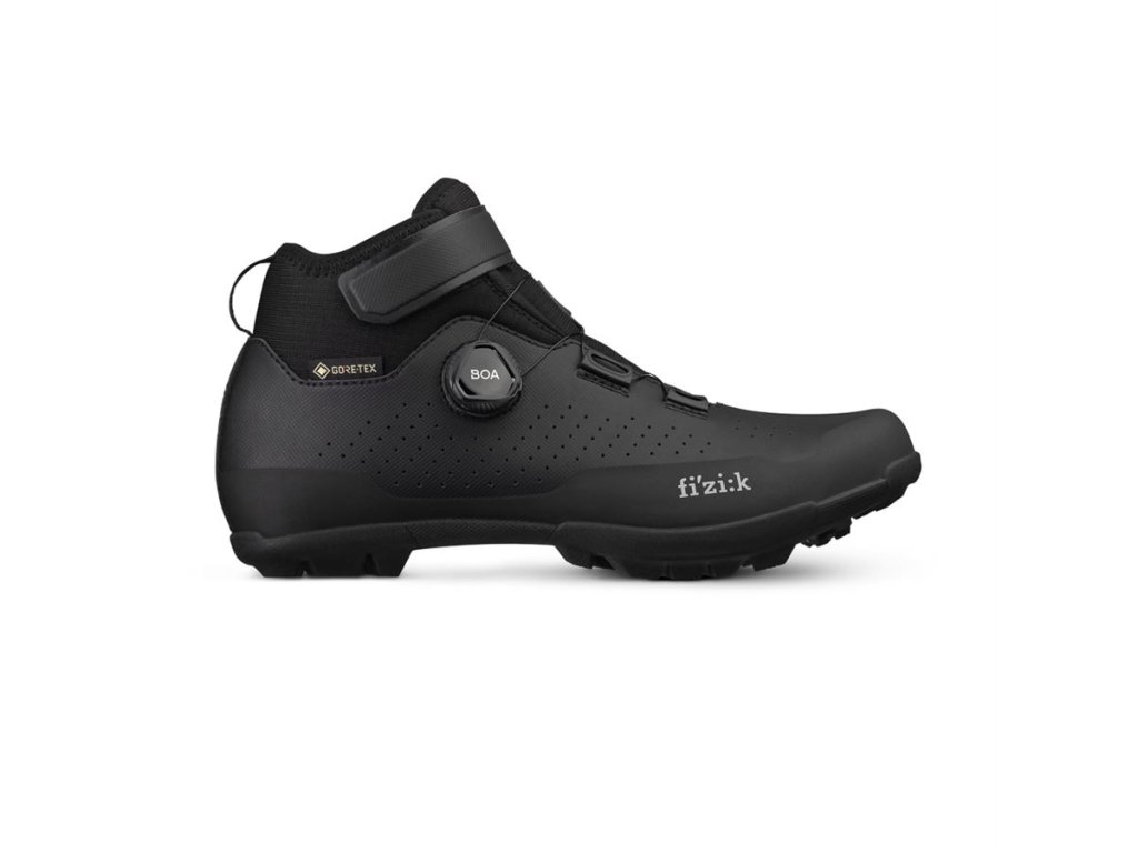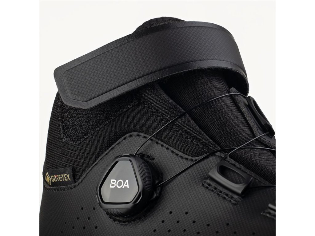 Vollständig isoliert, wasserdicht und gleichzeitig atmungsaktiv: Die neuen Winterstiefel von Fizik für jedes Terrain sind für extreme Wetterbedingungen gerüstet und schützen dich selbst bei widrigsten Bedingungen – egal ob auf verschneiten Pfaden, durch sumpfige Wälder oder über nassen Schotter. Dank der GORE-TEX Koala Membran sind die Artica GTX wasserdicht. Diese Membran lässt kein Wasser eindringen und transportiert gleichzeitig Feuchtigkeit nach außen. Mit dem benutzerfreundlichen BOA-Drehverschluss und dem Klettverschluss lassen sich die Stiefel auch mit warmen Winterhandschuhen schnell anziehen. Die Sohle mit einem Steifigkeitsindex von 5 ist verbreitert und gummiert für optimale Stabilität, selbst auf eisigen Oberflächen. Das Innere des Stiefels, inklusive der Innensohle, ist mit Fleece gefüttert und sorgt so für angenehmen Tragekomfort auch an den kältesten Tagen. Der Artica GTX ist ein Winter-MTB-Stiefel, in dem deine Füße nicht schwitzen und auch beim Durchqueren eines Bachs trocken bleiben. Hauptmerkmale: GORE-TEX KOALA Membran: Die isolierende, wasserdichte und atmungsaktive GORE-TEX Koala Membran hält Ihre Füße warm und trocken. FLEECE-POLSTERUNG: Fleece sorgt auch an den kältesten Wintertagen für ausreichend Wärme und Komfort. GANZTÄGIGER TRAGEKOMFORT: Hervorragende Passform und einfache Anpassung dank BOA-Drehverschluss und Dry Strap. R5 NYLON-Außensohle: Optimierte Positionierung der Stopper und mittlere Steifigkeit der Außensohle. Lesen Sie die Fizik Artica Schuhtests auf der Pinkbike-Website... https://www.pinkbike.com/news/review-fiziks-artica-gtx-winter-clipless-shoes.html Positive Aspekte laut Tester: + Hervorragende Winterbeständigkeit ohne Einbußen bei der Atmungsaktivität + Hochwertige Verarbeitung und Materialien + Großer Einstellbereich für die Bremsen ...und auch die tschechische Meinung im MTBS-Test: https://mtbs.cz/clanek/test-fi-zik-terra-artica-x5-gtx/kategorie/doplnky-na-kolo MATERIAL GORE-TEX Koala Membran (wasserdichte und atmungsaktive Membran), verstärktes Microtex SOHLE X5 Nylon, gummiert, Steifigkeitsindex 5 VERSCHLUSSSYSTEM BOA L6 und Klettverschluss EINLEGESOHLE fi'zi:ks mit Fleece-Finish GEWICHT 382 g (42,5) GRÖSSEN 41–47