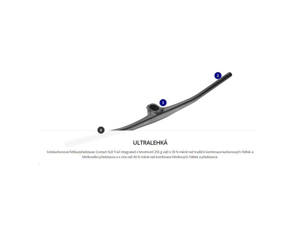 Der integrierte Lenker/Vorbau Contact SLR Trail bietet Einstellbarkeit, Komfort, geringes Gewicht und ein klares, schlichtes Design. Er vereint alle Vorteile einer einteiligen Lenker-Vorbau-Lösung mit der Einstellbarkeit einer herkömmlichen zweiteiligen Konstruktion. Die robuste, patentierte Carbon-Konstruktion und das schlankere Profil im Mittelbereich absorbieren Vibrationen und sorgen so für bessere Kontrolle und mehr Komfort in unwegsamem Gelände. Dank der integrierten Ahead-Kappe lassen sich Fahrradcomputer, GoPro oder Lampen einfach montieren. EIGENSCHAFTEN Material: Advanced Composite Carbon Gewicht: 255 g Spezielle Carbon-Falttechnologie sorgt für Flexibilität und Haltbarkeit Erfüllt DH-Teststandards Breite: 800 mm, verkürzbar auf bis zu 760 mm (grafische Elemente für präzise Verkürzung) Vorbauspacer zur Längenanpassung auf 40, 45 oder 50 mm Rise: 20 mm Effektive Biegung zum Fahrer (Backsweep): 7°, 8° oder 9° mit 0° und +/- 3° Spacer-Biegungswinkel (Upsweep): 5° Befestigung am Gabelvorbau mit 2 Titanschrauben Die Top Cap kann durch eine Halterung ersetzt werden, mit der ein Fahrradcomputer, eine GoPro-Kamera oder eine Lampe am Lenker befestigt werden kann (Halterung im Lieferumfang enthalten) SPEZIFIKATION Breite: 800 mm Rise: 20 mm