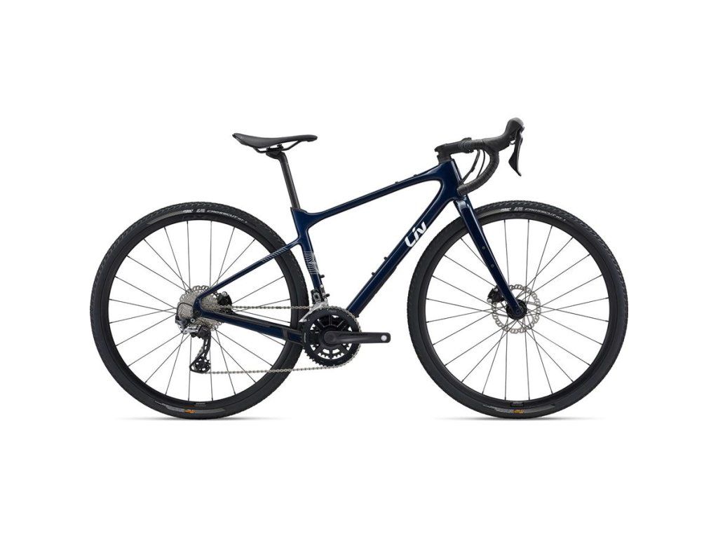 Die Kategorie der Gravelbikes erfreut sich immer größerer Beliebtheit, vor allem aufgrund der Vielseitigkeit dieser Fahrräder, die nicht nur für Schotterpisten konzipiert sind – wie der englische Begriff „Gravel“ bereits andeutet. Daher darf ein Gravelbike in unserem Angebot an Damenrädern nicht fehlen. Das Devote Advanced ist ein äußerst komfortables, schnelles und spaßiges Bike, das seine Stärken am besten auf anspruchsvollen Strecken oder direkt bei Gravelbike-Rennen ausspielt. Hauptvorteile: Rahmen aus Advanced Composite Carbon. Die Basis des Bikes bildet der superleichte, hochsteife und gleichzeitig sehr komfortable Rahmen aus Advanced Composite Carbon. Für eine cleane Optik ist eine integrierte Sattelklemme ein Muss, und die interne Kabelführung ist selbstverständlich. Der Rahmen bietet Platz für bis zu drei Flaschenhalter, und für Touren mit Packtaschen besteht zudem die Möglichkeit, einen Gepäckträger vorne und hinten zu montieren. Rahmen und Gabel bieten mehr Platz für breitere Reifen. Exzellentes Handling und hohe Effizienz: Die frauenspezifische Gravel-Geometrie des Devote Advanced Modells zeichnet sich vor allem durch ein deutlich abgesenktes Oberrohr und einen kürzeren Hinterbau aus. Das Ergebnis: präzises Handling, Agilität und perfekte Kontrolle über das Bike in jeder Situation. Der Carbonrahmen setzt die Pedalkraft optimal um und ermöglicht so ein schnelles und gleichzeitig komfortables Fahrgefühl auf unterschiedlichen Untergründen. Hoher Komfort: Neben den tief positionierten Sitzstreben trägt auch die D-Fuse Carbon-Sattelstütze zum Komfort bei. Dank ihrer D-Form gibt sie unter Belastung leicht nach. Der Rahmen ist jedoch auch für eine Standard-Rundsattelstütze mit 30,9 mm Durchmesser vorbereitet, sodass die Montage einer Teleskopsattelstütze problemlos möglich ist (das Modell Devote Advanced 1 ist damit ausgestattet). Der Contact XR D-Fuse Lenker sorgt für mehr Komfort im Frontbereich und reduziert so die Ermüdung der Hände. Rahmengröße L, Farbe: Candy Navy, Rahmen: Advanced-Grade Composite, 12x142 mm Steckachse, Scheibenbremse, Gabel: Advanced-Grade Composite, Vollcarbon-OverDrive-Gabelschaft, 12 mm Steckachse, Scheibenbremse, Lenker: Giant Contact XR D-Fuse, 31,8 mm, Griffe: Liv All Condition, Vorbau: Giant Contact XS: 70 mm, S: 80 mm, M: 90 mm, L: 90 mm, Sattelstütze: Giant D-Fuse, Composite XS: 75 mm Federweg, S: 75 mm Federweg, M: 75 mm Federweg, L: 100 mm, Sattel: Liv Approach, Schaltung: Shimano GRX RX-600, 2x11, Schaltwerk: Shimano GRX RX-810, Bremsen: Shimano GRX RX-400 hydraulisch, Giant MPH Bremsscheiben (vorne: 160 mm, hinten: 160 mm), Bremshebel: Shimano GRX RX-600 hydraulisch, Kassette: Shimano 105, 11-fach, 11x34 Kette KMC X11SL-1 Kurbeln Praxis Alba 2D, 32/48 Innenlager Praxis, Pressfit Felgen Giant P-X2 Disc Laufradsatz Naben Giant P-X2 Disc Laufradsatz Speichen Giant P-X2 Disc Laufradsatz Reifen Giant CrossCut AT 1, 700x38c, Tubeless Zubehör Tubeless Ready, max. Reifengröße 50 mm.