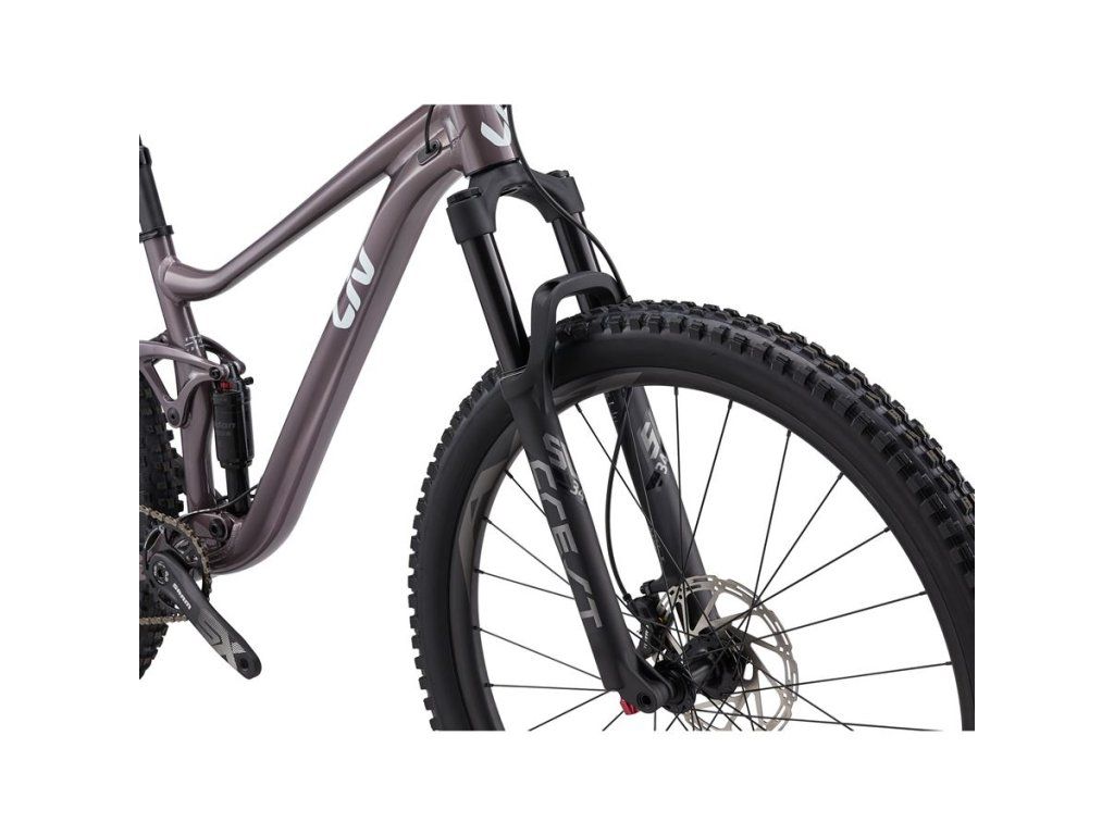 Wenn Sie ein erschwingliches und hochwertiges Fully suchen, das sich besonders für spaßige Trails und Singletrails eignet, ist das Embolden genau das Richtige für Sie. Dank der Federung mit 140 und 120 mm Nachlauf, der hervorragenden Geometrie und der Teleskop-Sattelstütze werden Sie sich auf diesem Bike wohl und sicher fühlen und jede Fahrt genießen. Hauptmerkmale: ALUXX-Aluminiumrahmen. ALUXX-Rahmen aus hochwertiger Aluminiumlegierung aus eigener Fertigung bieten hohe Steifigkeit und Festigkeit bei geringem Gewicht. Moderne Geometrie und Design, interne Kabelführung und Vollachsen sind Standard. Das Embolden ist mit 29"- und 27,5"-Laufrädern erhältlich – die kleinste Größe XS hat 27,5"-Laufräder, die Größen S und M sind in beiden Varianten verfügbar und Größe L hat 29"-Laufräder. Hochwertiges Fahrwerk: Das FlexPoint-Fahrwerk ist ein bewährtes Eingelenk-Hinterradfahrwerk mit zusätzlicher Nachfüllfunktion. Es ist ein sehr einfach konstruiertes System, was den Vorteil einer einfachen Wartung bietet (weniger Drehpunkte – weniger Lager). FlexPoint bietet 120 mm Federweg und reagiert dank eines Luftdämpfers sensibel auf größere und kleinere Unebenheiten. Die Luftfedergabel bietet 140 mm Federweg. Trail-tauglich: Dank der Teleskop-Sattelstütze wird das Fahren in Abfahrten und auf technischen Passagen sicherer und macht mehr Spaß. Ein breiterer Lenker und ein kürzerer Vorbau sorgen für ein besseres Handling des Bikes, und breitere Trail-/Enduro-Reifen geben dir zusätzliches Vertrauen. Darüber hinaus sind die Räder bereits ab Werk in schlauchloser Ausführung ausgestattet – die moderne „schlauchlose“ Technologie sorgt für bessere Fahreigenschaften und verringert zudem das Pannenrisiko. Rahmengröße L, Laufräder 29", Farbe Charcoal Plum, Rahmen: ALUXX-Aluminium, 120 mm FlexPoint Federung, Gabel: Giant Crest 34 SL RCL, 140 mm, Boost 15x110, 44 mm Offset, Dämpfer: Suntour Raidon R, 184x44, speziell für Liv abgestimmt, Komponenten: Lenker: Giant Contact TR35, 20 mm Rise, Aluminium, 27,5", XS: 730 mm, S: 750 mm, M: 750 mm, 29", S: 750 mm, M: 750 mm, L: 780 mm, Griffe: Giant Sole-O, Vorbau: Giant Contact, 35 mm, 27,5", XS: 40 mm, S: 50 mm, M: 50 mm, 29", S: 50 mm, M: 50 mm, L: 60 mm, Sattel: Giant Contact Switch Dropper 27,5": XS: 75 mm Federweg / 30,9 x 295 mm S: 100 mm Federweg / 30,9 x 345 mm M: 125 mm Federweg / 30,9 x 395 mm 29": S: 100 mm Federweg / 30,9 x 345 mm M: 125 mm Federweg / 30,9 x 395 mm L: 125 mm Federweg / 30,9 x 345 mm SATTEL: Liv Sylvia ANSATZ: SRAM SX Eagle, 1x12 SCHALTWERK: SRAM SX Eagle BREMSEN: Shimano MT-420, hydraulisch, Shimano RT-26 Bremsscheiben [V] 180 mm, [H] 180 mm BREMSHEBEL: Shimano BL-MT401 KASSETTE: SRAM SX Eagle, 11x50 KETTE: SRAM SX Eagle KURBELN: SRAM SX Eagle OAK 30 Zähne 27,5": XS: 165 mm, S: 170 mm, M: 170 mm 29": S: 170 mm, M: 170 mm, L: 170 mm MITTELKURVE SRAM OAK, Pressfit LAUFRÄDER FELGEN 27,5": Giant AM 27.5, Tubeless Ready, Hülsenverbindung, 30 mm Innenbreite 29": Giant AM 29, Tubeless Ready, Hülsenverbindung, 30 mm Innenbreite NABEN Aluminium Sapim REIFEN 27,5": [V] Maxxis Minion DHF 27,5x2.6, EXO, TR, Tubeless [H] Maxxis Dissector 27,5x2.6, EXO, TR, Tubeless 29": [V] Maxxis Minion DHF 29x2.5 WT, EXO, TR, Tubeless [H] Maxxis Dissector 29x2.4 WT, EXO, TR, Tubeless-Zubehör: Tubeless-vorbereitet, max. Reifengröße 2,6 Zoll, max. Kettenblattgröße 32 Zähne