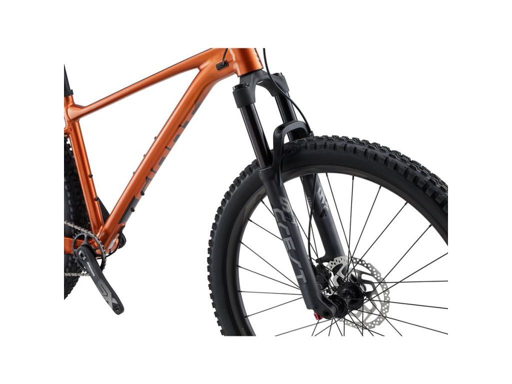 Das Fathom 29 bietet moderne Trail-Geometrie, eine hochwertige Federgabel mit 130 mm Federweg und eine Teleskop-Sattelstütze. Es ist ein 29"-Trailbike, das primär für Trails, Singletrails und anspruchsvolleres Gelände konzipiert wurde – kurz gesagt, ein Bike, mit dem du auch ohne Hinterradfederung jede Menge Spaß haben wirst! Hauptvorteile: ALUXX SL Aluminiumrahmen. Der leichte und gleichzeitig sehr steife und robuste Aluminiumrahmen wird in unserem eigenen Werk aus unserer hochwertigen ALUXX SL-Legierung gefertigt. Seine Besonderheit ist die Kettenstrebenkonstruktion, die ein kürzeres Hinterbau (435 mm) für besseres Handling und gleichzeitig mehr Platz für den Hinterreifen (bis zu 2,5") ermöglicht. Die moderne Trail-Geometrie des Fathom 29 verfügt über explizite Trail-Parameter für maximalen Fahrspaß. Beispielsweise passt die flachere Gabel (66° Lenkwinkel) perfekt dazu und sorgt für besseres Handling auf dem Trail, in Abfahrten und auf technischen Passagen. Bergauf hingegen werden Sie den 75° Sitzwinkel zu schätzen wissen, der Ihnen die optimale Position für selbst steile Anstiege bietet. Offroad-Vertrauen: Die Giant Crest 34 RCL Luftfedergabel mit 130 mm Federweg bügelt Unebenheiten sensibel aus und gibt Ihnen so mehr Sicherheit im Gelände. Beide Modelle sind zudem mit einer Teleskop-Sattelstütze ausgestattet, genauer gesagt mit unserer Giant Contact Switch Sattelstütze mit interner Kabelführung. Die Teleskop-Sattelstütze bietet Ihnen mehr Sicherheit, insbesondere bergab, wo das Fahren mit einem niedrigen Sattel mehr Spaß und Sicherheit bietet. Rahmengröße S, Farbe: Amber Glow, Rahmen: ALUXX SL-Grade Aluminium, Gabel: Giant Crest 34 SL RCL, 130 mm Federweg, 44 mm Offset, Boost 15x110, Lenker: Giant Contact TR35, 780x35 mm, Griffe: Giant Sole-O, Vorbau: Giant Contact SL 35, Größen: S: 40 mm, M: 40 mm, L: 50 mm, XL: 50 mm, Sattelstütze: Giant Contact Switch Dropper, Fernbedienung, Größen: S: 125 mm Federweg / 30,9 x 395 mm, M: 125 mm Federweg / 30,9 x 395 mm, L: 150 mm Federweg / 30,9 x 440 mm, XL: 170 mm Federweg / 30,9 x 450 mm, Sattel: Giant Romero, Schaltwerk: SRAM SX Eagle, 1x12, Schaltwerk: SRAM NX Eagle, Bremsen: Shimano BR-MT420/410, hydraulisch, Shimano RT-26 Bremsscheiben [V] 180 mm, [H] 180 mm Bremshebel Shimano BR-MT401 Kassette SRAM SX Eagle, 11x50 Kette SRAM SX Eagle Kurbeln SRAM SX Eagle, 30 Zähne S: 165 mm, M: 170 mm, L: 170 mm, XL: 170 mm Innenlager SRAM DUB, Pressfit Felgen Giant AM 29, Tubeless Ready, Hülsenverbindung, 30 mm Innenbreite Naben Aluminium, gedichtet Speichen Edelstahl Reifen [V] Maxxis Minion DHF, 29x2.5 WT, EXO/TR [H] Maxxis Aggressor, 29x2.5 WT, faltbar, EXO/T Zubehör Tubeless-vorbereitet, max. Reifengröße 2,5 Zoll, max. Kettenblattgröße 32 Zähne