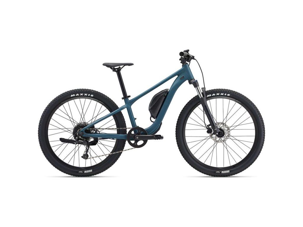 Um unser Angebot an E-Bikes zu vervollständigen, bieten wir auch ein Kinder-/Junior-E-Bike an. Es ist mit einem Hinterradmotor ausgestattet und verfügt über 250 Wh elektrische Leistung. So hat Ihr Kind beim gemeinsamen Fahren genügend Kraft und Energie, um mühelos mit Ihrem Tempo mitzuhalten oder auch anspruchsvollere Anstiege zu bewältigen. Diese Variante ist mit 24-Zoll-Rädern erhältlich; eine Version mit 26-Zoll-Rädern ist ebenfalls verfügbar. Hauptvorteile: Hervorragendes Handling, Sicherheit und Komfort. Das Herzstück des Fahrrads bildet ein leichter ALUXX-Aluminiumrahmen, dessen Geometrie optimal an die kindliche Statur angepasst ist. Dadurch ist das Fahrrad komfortabel, perfekt wendig und macht vor allem Spaß. Die Federgabel mit 80 mm Federweg gleicht Unebenheiten im Gelände aus, und hydraulische Scheibenbremsen sorgen für eine hohe Bremsleistung. Für komfortables und sicheres Fahren abseits befestigte Wege ist das Fahrrad mit breiteren Reifen ausgestattet. Ein praktischer Ständer, der mit einer integrierten Halterung am Rahmen angebracht ist, rundet das Paket ab. Giant Hybrid Cycling Technologie: Das RideControl Dash mit seinem Farbdisplay schaltet den Elektroantrieb ein und wählt die gewünschte Unterstützungsstufe oder den vollautomatischen Smart Assist-Modus. Sobald Kraft auf die Pedale ausgeübt wird, werden Sensoren aktiviert, die Informationen an die Steuereinheit senden. Dieses „Gehirn“ des Systems fordert blitzschnell die passende Energiemenge vom EnergyPak-Akku an. Die Energie wird dann an den SyncDrive-Motor übertragen, der sofort und sanft mit der Tretunterstützung beginnt. Natürliche Unterstützung und viel Power: Der im Hinterrad befindliche SyncDrive Move-Motor bietet eine sanfte und natürliche Tretunterstützung mit dem optimalen Drehmoment von 30 Nm für Kinder. Er ist außerdem mit der Smart Assist-Technologie ausgestattet, die mithilfe von fünf Sensoren die jeweils optimale Unterstützungsstufe präzise ermittelt. Der leichte und kompakte EnergyPak-Akku mit einer Kapazität von 250 Wh befindet sich oben am Unterrohr und kann seitlich entnommen werden. Das 4-Ampere-EnergyPak-Smart-Ladegerät sorgt für schnelles Aufladen des Akkus. Spezifikationen der Hybridtechnologie: Motor: SyncDrive Move, Hinterradnabe, 30 Nm Steuereinheit: RideControl Dash Display: RideControl Dash, vollfarbiges LCD-Display Akku: EnergyPak 250 Ladegerät: EnergyPak Smart 4A Ladegerät Rahmen: Einheitsgröße (26-Zoll-Räder) Farbe: Deeplake Rahmen: ALUXX Aluminium, 1/8"-Steuerrohr, 142 mm Ausfallende, integrierte KSA18-Seitenständeraufnahme Gabel: SR Suntour XCM HLO 26", 80 mm Federweg Komponenten: - Lenker: Giant Connect XC Riser 31,8 x 640 mm - Griffe: Giant Junior - Vorbau: Giant Contact 50 mm - Sattelstütze: Giant 30,9 mm, 2-Schrauben-Mikroverstellung, geschmiedetes Aluminium - Sattel: Giant Youth Sport - Pedale: Aluminium-Plattformpedale Montage: - Schalthebel: Shimano Altus - Schaltwerk: Shimano Alivio, 9-fach - Bremsen: Tektro HD-M282, hydraulische Scheibenbremsen 160 mm – Bremshebel: Tektro HD-M282 – Kassette: Shimano CS-HG200, 11–36 Zähne, 9-fach – Kette: KMC e.9 Sport – Kurbeln: Geschmiedete Aluminiumkurbel mit minimalem Q-Faktor, 36 Zähne – Laufräder: – Felgen: Giant GX03V 26 Zoll Aluminium – Naben: Giant eTracker Sport, 9 mm Schnellspanner [V], SyncDrive Move 142 mm [H] – Speichen: Edelstahl – Reifen: Maxxis Ikon 26 x 2,20 Zoll EXO pannensicher