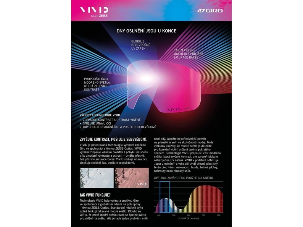 Die elegante, rahmenlose Ella Damenbrille ermöglicht einen schnellen und einfachen Gläserwechsel. Vier Magnete halten das Glas sicher in Position, vier Stifte fixieren es zusätzlich. Die mittlere Größe deckt viele Gesichtsformen ab und bietet ein beeindruckend weites Sichtfeld (Expansion View Technology), das nicht durch den Rahmen eingeschränkt wird. Im Lieferumfang enthalten sind zwei hochwertige Gläser von ZEISS mit VIVID-Technologie – eines für sonniges Wetter und eines für schlechte Sichtverhältnisse. Die VIVID-Technologie erhöht den Kontrast, reduziert die Augenermüdung, blockiert UV-Strahlung und verbessert die Reaktionszeit. Die Evak™-Belüftungstechnologie und die Antibeschlagbeschichtung verhindern das Eindringen von Feuchtigkeit. Kompatibilität mit Giro-Helmen ist garantiert. GESTELL Größe Medium für Damen Randloses Design EXV – Expansion View Technologie für ein unbegrenztes Sichtfeld Aussparungen für Korrektionsbrillen – OTG-kompatibel GLÄSER Zwei zylindrische Gläser von ZEISS – mit VIVID Technologie: eines für sonniges Wetter, eines für eingeschränkte Sicht Einfacher Gläserwechsel – magnetische Befestigung WEITERE MERKMALE Antibeschlagbeschichtung Antibeschlag EVAK Technologie für Belüftung des Brilleninnenraums Polsterung: Dreilagiger Schaumstoff mit Mikrofleece Kompatibel mit allen Giro Helmen VIVID TECHNOLOGIE ERHÖHT KONTRAST, STÄRKT DAS SELBSTVERTRAUEN. VIVID ist eine patentierte Technologie, die von Giro in Zusammenarbeit mit ZEISS Optics entwickelt wurde. VIVID verbessert das visuelle Erlebnis beim Fahren im Schnee deutlich, indem es Kontrast und Schärfe erhöht – Sie sehen präzise, ohne übermäßige Farbsättigung. VIVID reduziert die Augenermüdung, verbessert die Reaktionszeit und stärkt das Selbstvertrauen. WIE FUNKTIONIERT VIVID? Die VIVID Technologie wurde von Giro in Zusammenarbeit mit dem Weltmarktführer in der Optik – ZEISS Optics – entwickelt. Herkömmliche Skibrillen blockieren das sogenannte blaue Licht vollständig. Lange Zeit galt blaues Licht als schädlich für die Sicht im Schnee. Doch es gibt ein Problem: Schnee ist nicht weiß. Als die am stärksten reflektierende Oberfläche der Erde ist Schnee tatsächlich blau. Unsere Forschung hat gezeigt, dass blaues Licht wichtig für korrektes Sehen und das Erfassen von Schneefeldern ist. Die VIVID-Technologie lässt einen Teil des blauen Lichts durch, was den Kontrast erhöht, blockiert aber gleichzeitig gefährliche UV-Strahlung. VIVID filtert die Blendung heraus, und Ihre Augen sehen die Beschaffenheit des Geländes vor Ihnen genau: Unebenheiten, Erhebungen, Eisflächen, Schneemassen oder Tiefschnee.