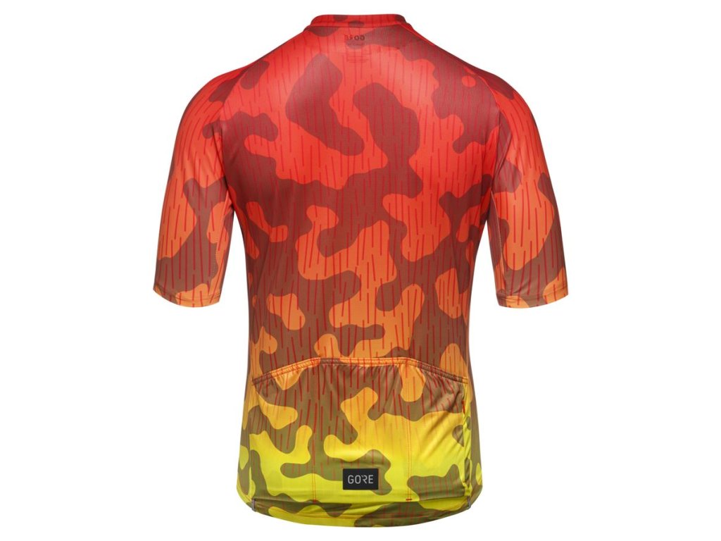 Das vielseitige GORE Rain Camo Jersey ist für tägliche Radtouren auf und abseits der Straße konzipiert. DETAILS UND MATERIALIEN: Jersey aus 100 % recycelten Materialien. Schnelltrocknendes und hautfreundliches Material. Anliegender Kragen. Bewährter Radsport-Schnitt mit verlängerten Ärmeln und Rücken. Drei Rückentaschen mit integrierter, sicherer Reißverschlusstasche für Schlüssel oder Wertsachen. Elastischer Saum. Durchgehender Reißverschluss mit Sicherheitsverschluss. Reflektierende Details. Gewicht: 130 g. Material: 100 % Polyester (recycelt). Das Jersey ist maschinenwaschbar bei maximal 40 °C (Schonwaschgang). Nicht bügeln, nicht bleichen, keinen Weichspüler verwenden und nicht im Trockner trocknen.